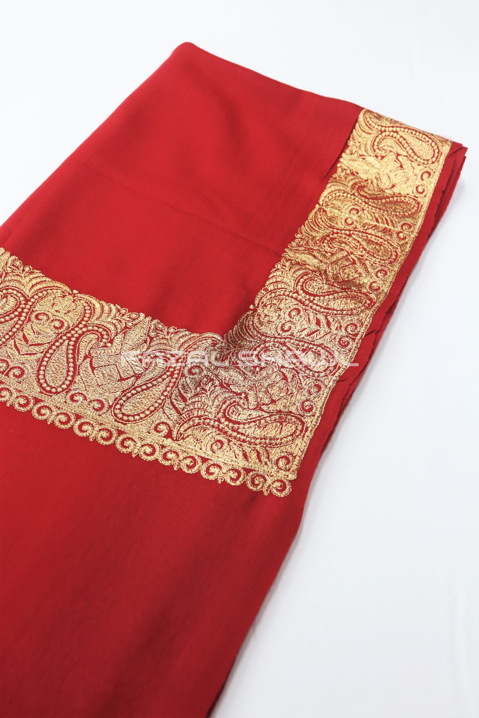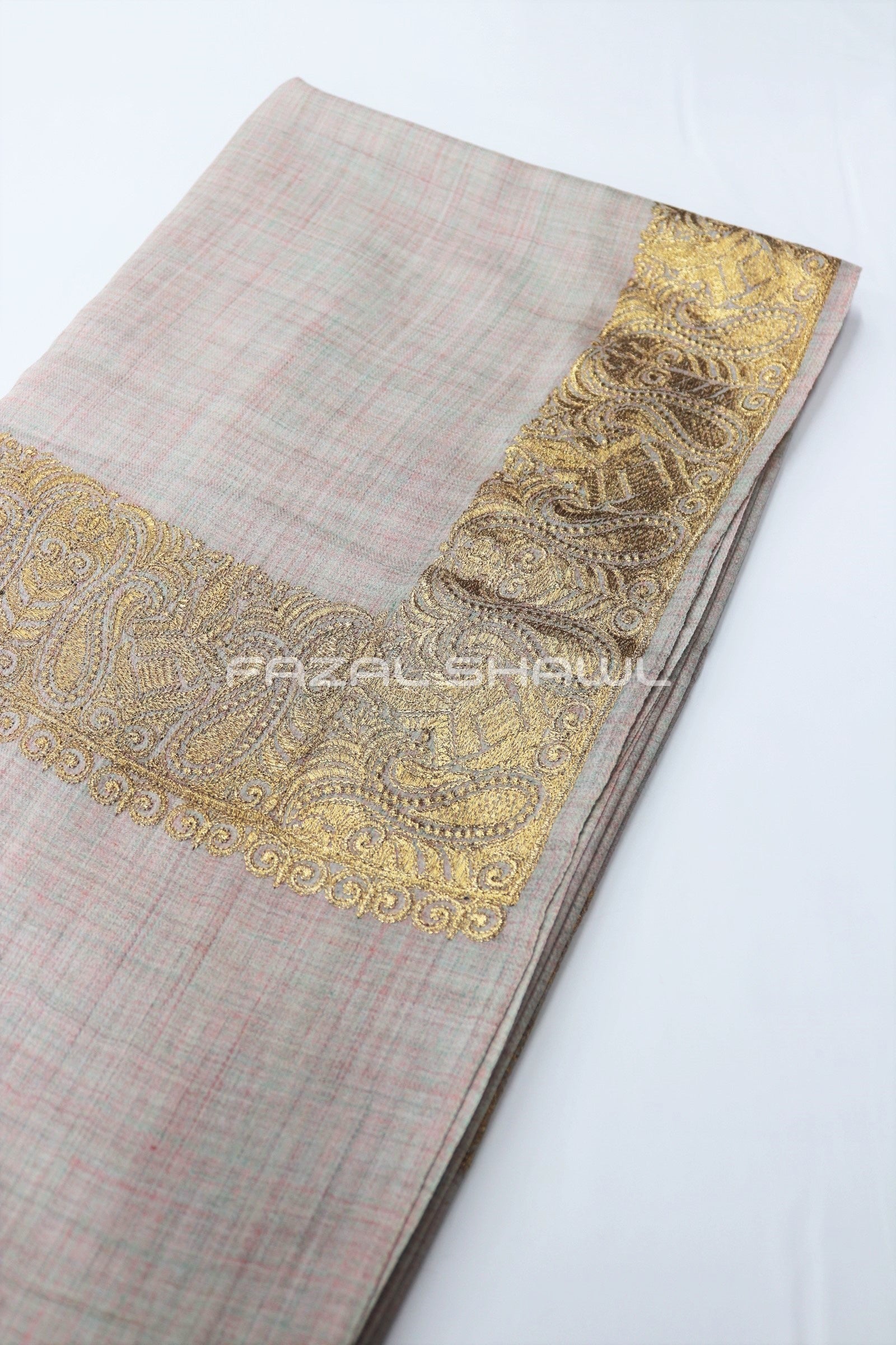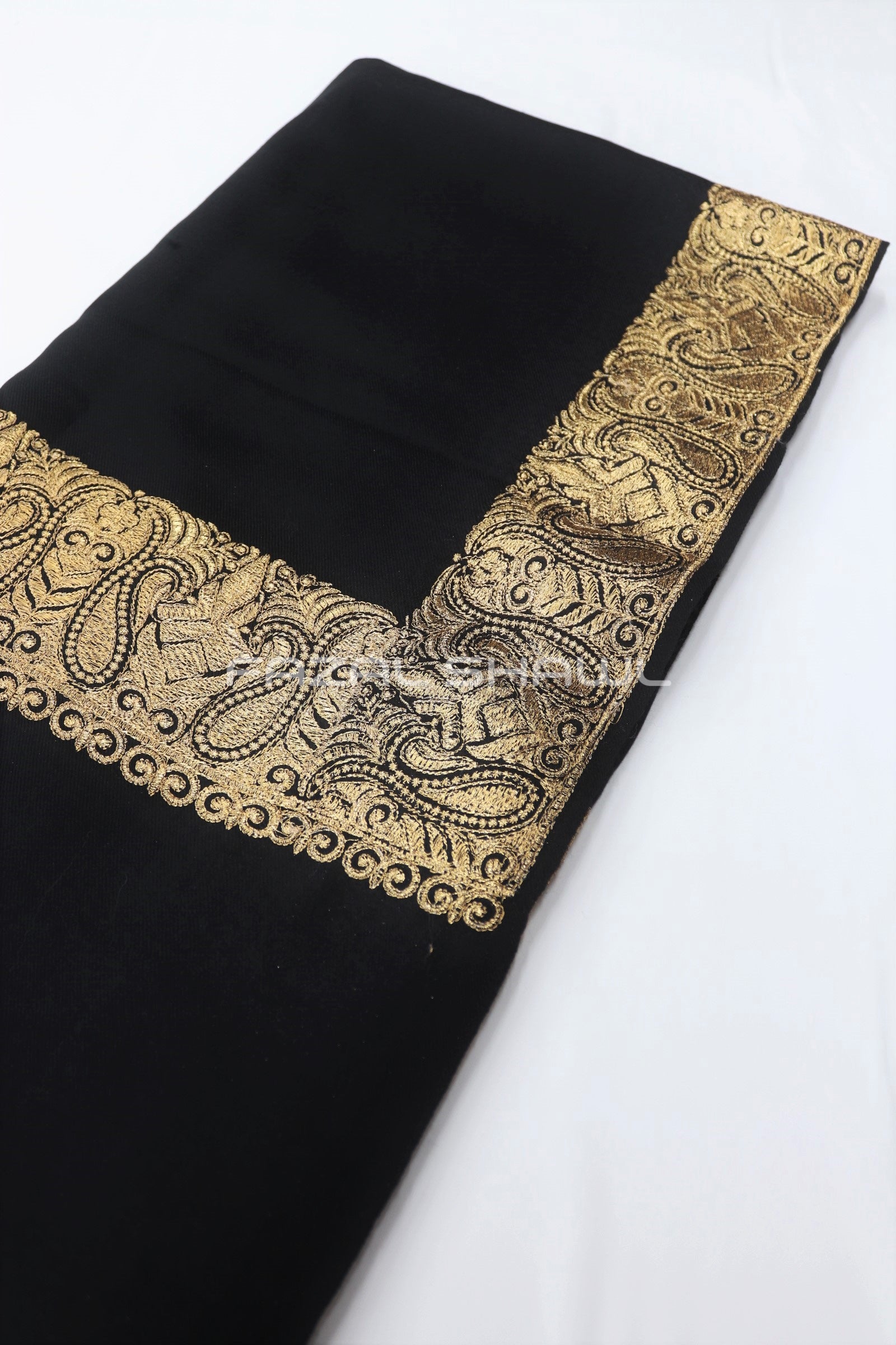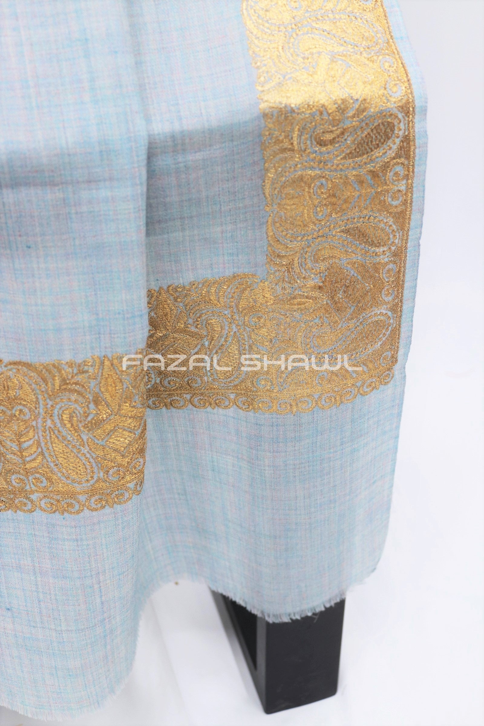 Border Size Is Four ( 4'') Inches On Four Side Border .Base is a Pashmina Wool. Computer Zari Border adds a modern, detailed grace, Fazal Shawl beneath creates a soft, elegant base. Together they blend tradition with tech-inspired art, A perfect fusion that sets your look apart.