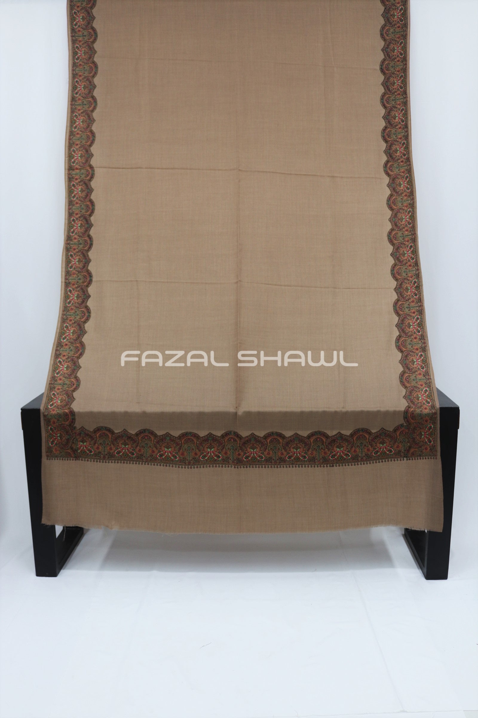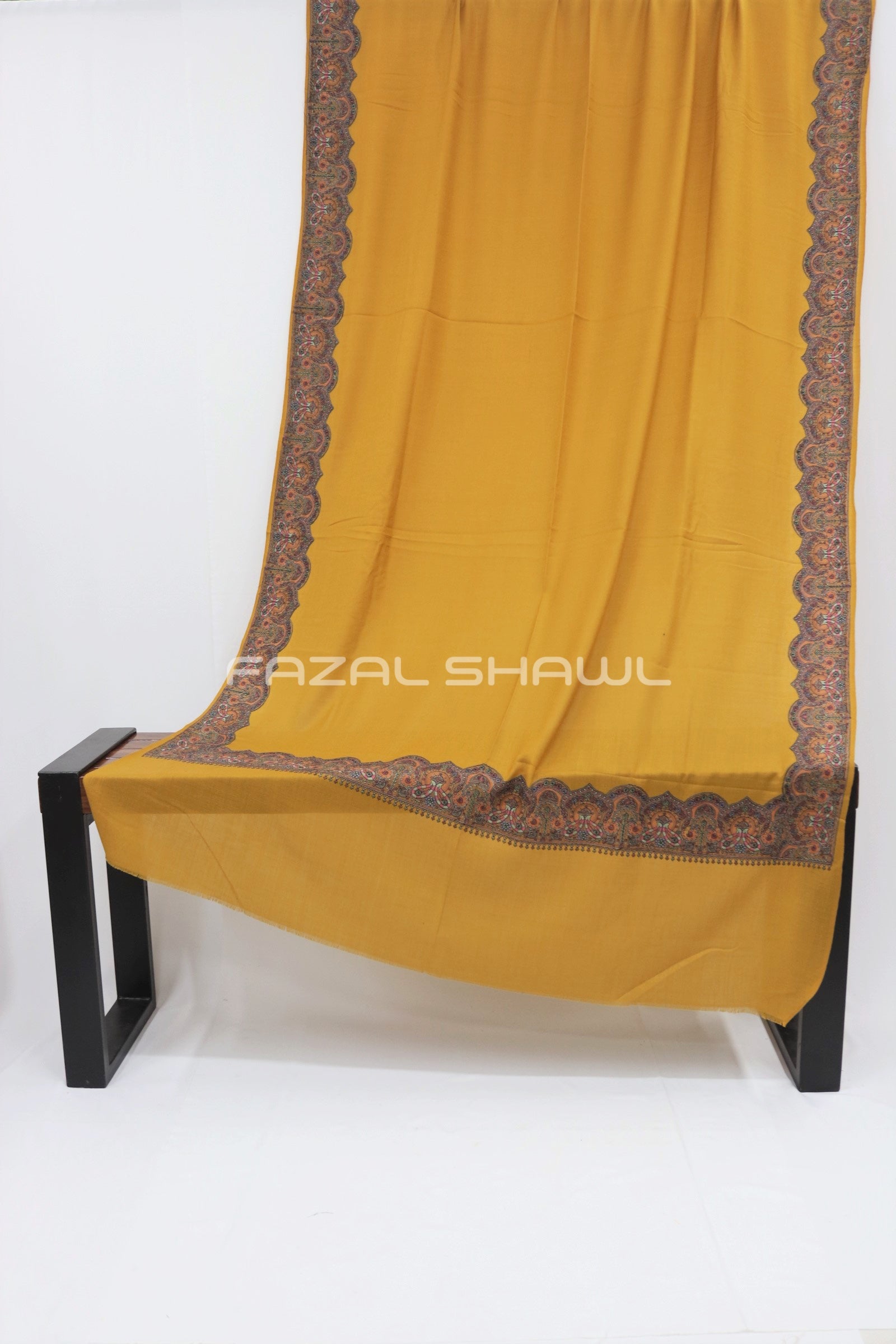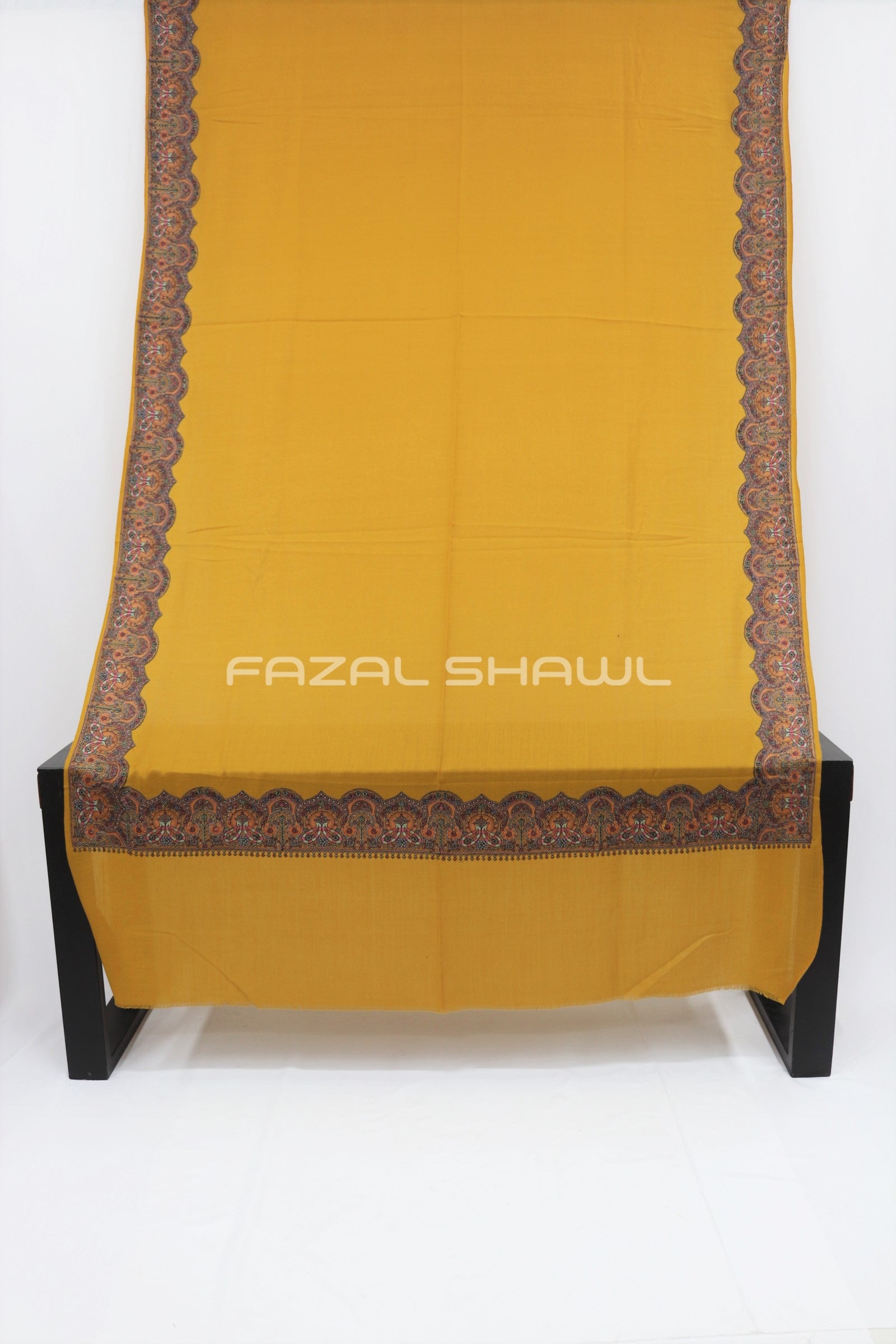 Border Size Is Five (5'') Inches On Four Side Border . Border is made by multipal threads is so awesome computer style. Base is a Pashmina Wool. The Taj Multi Border design by Fazal Shawls features a rich blend of traditional and contemporary patterns. Intricately woven multi-color borders enhance its regal appeal. Crafted from premium fabric, it offers exceptional softness and warmth. Perfect for adding elegance to any winter ensemble.