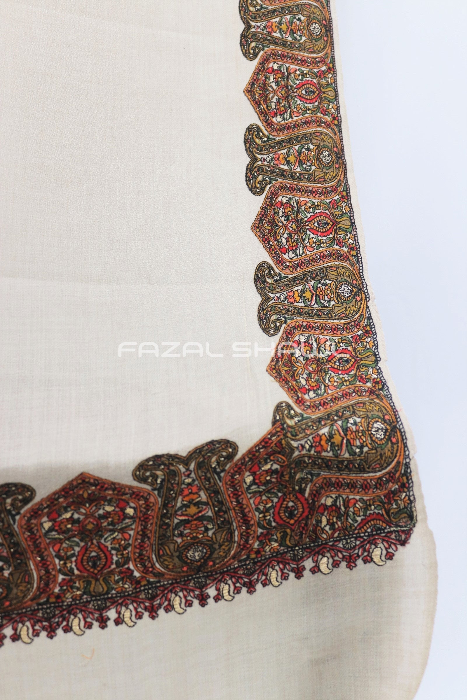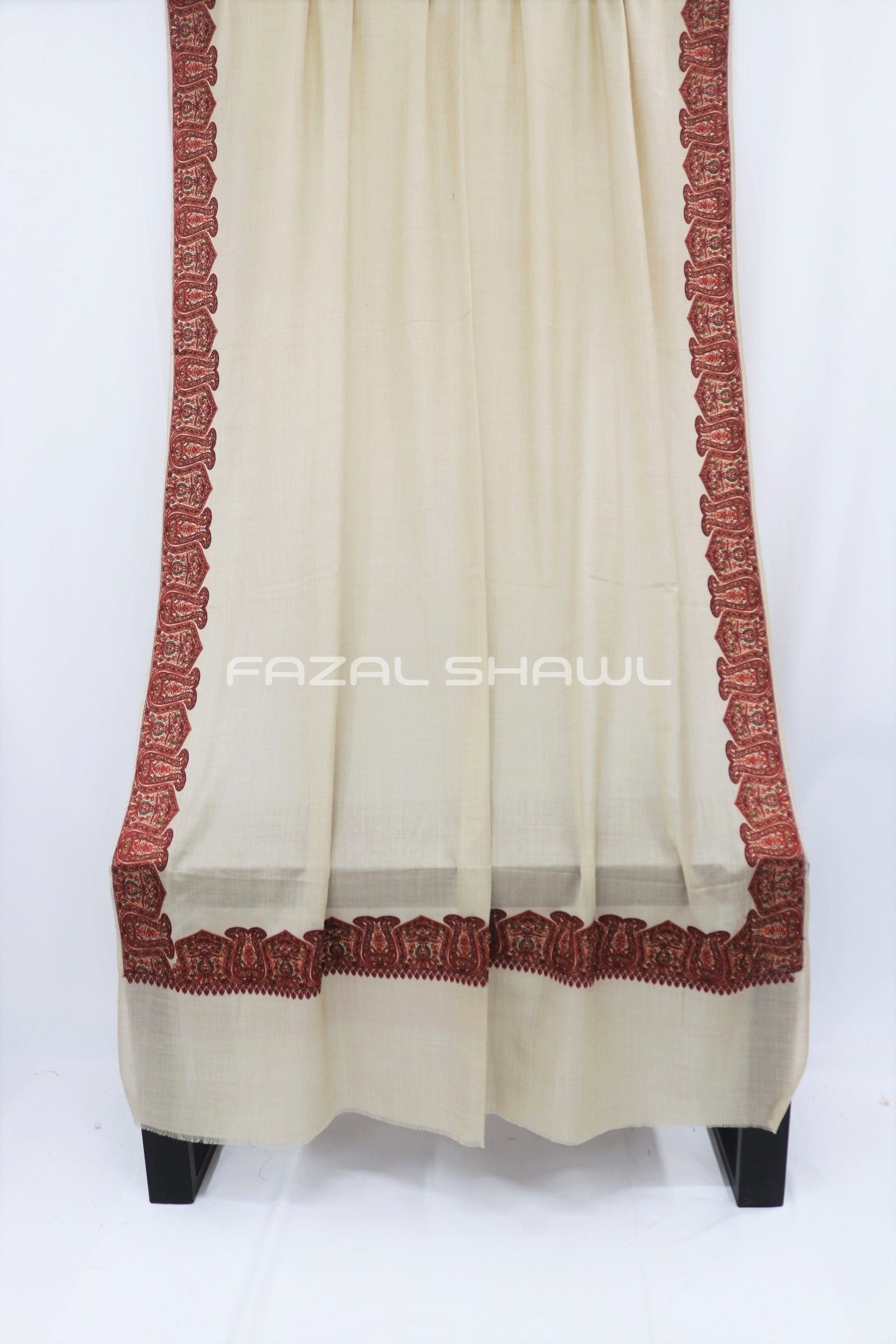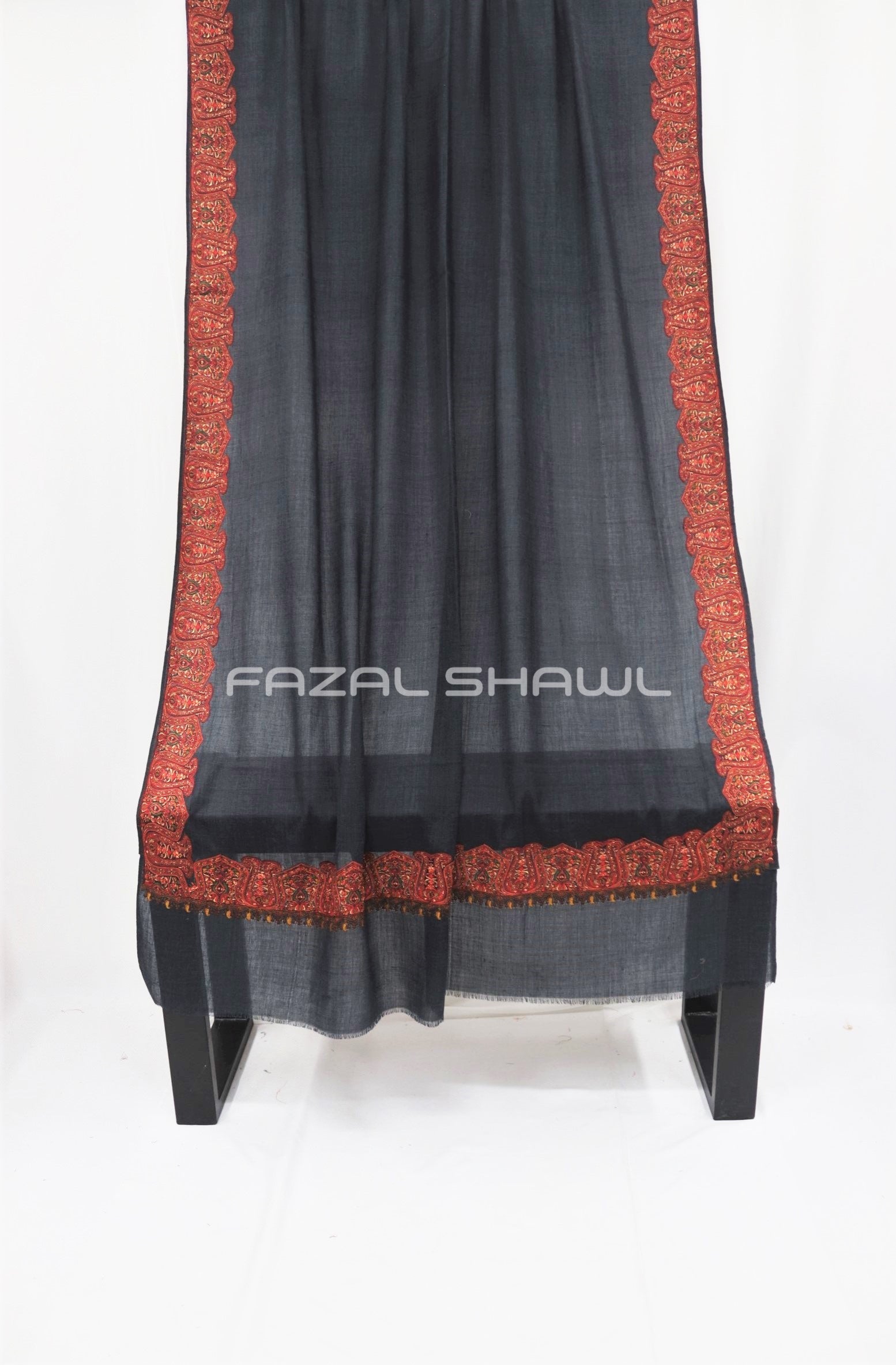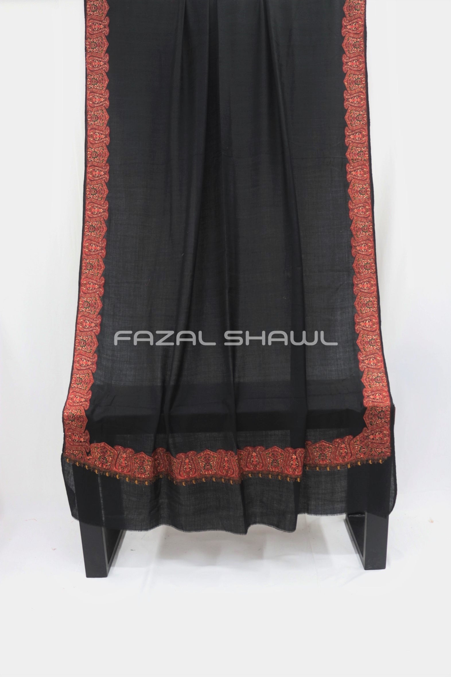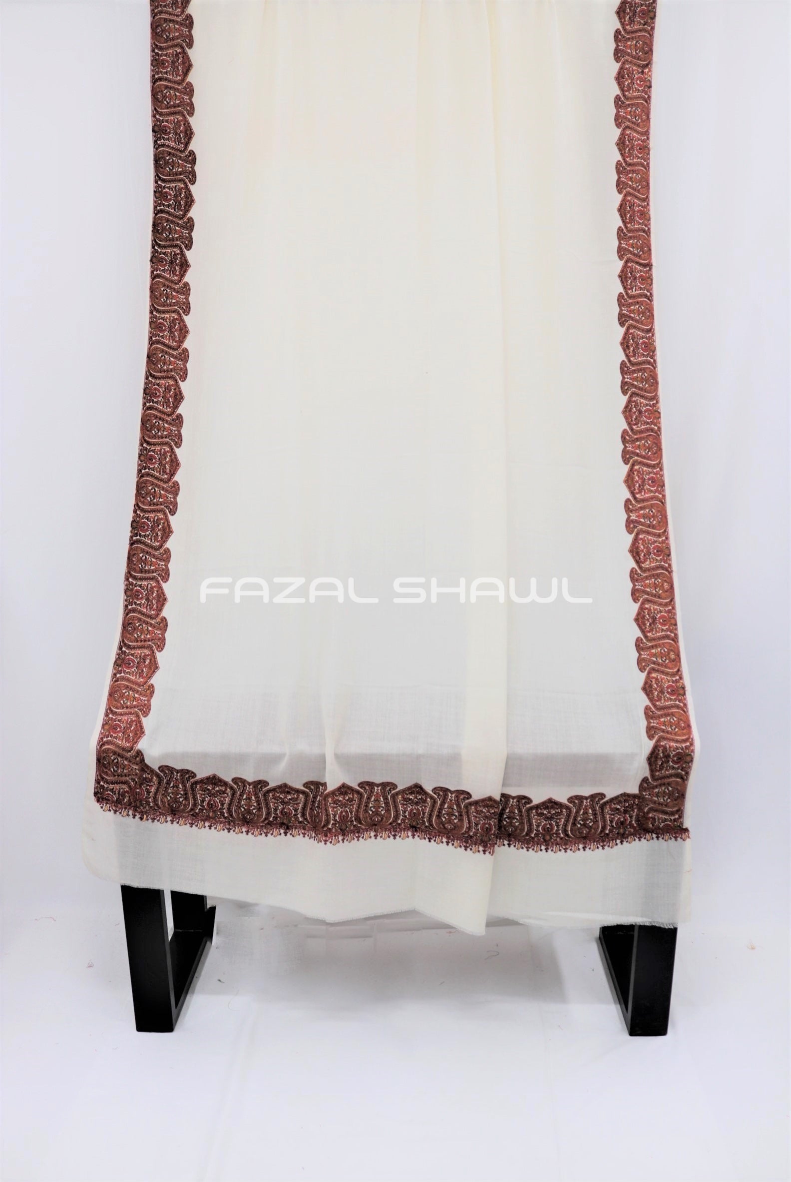Border Size Is Four ( 4'') Inches On Four Side Border .Base is a Pashmina Wool.Top Computer Multi Border brings fine detail and flair, Paired with Fazal Shawl, it’s a luxurious wear. Perfect for those who seek style with grace, A must-have piece at our Fazal Shawl place!