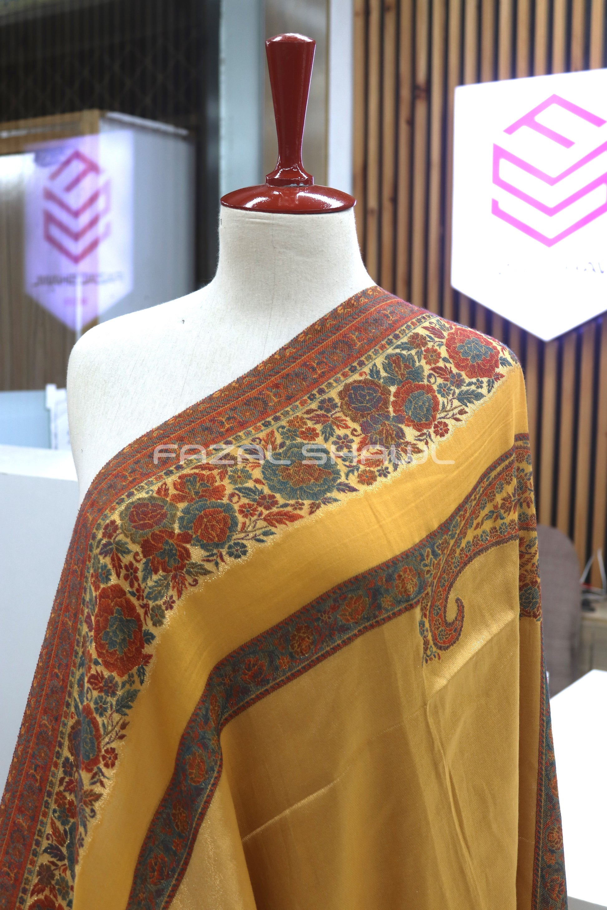 Design: Intricate Double Khani Border on both ends, inspired by traditional Kashmiri artistry