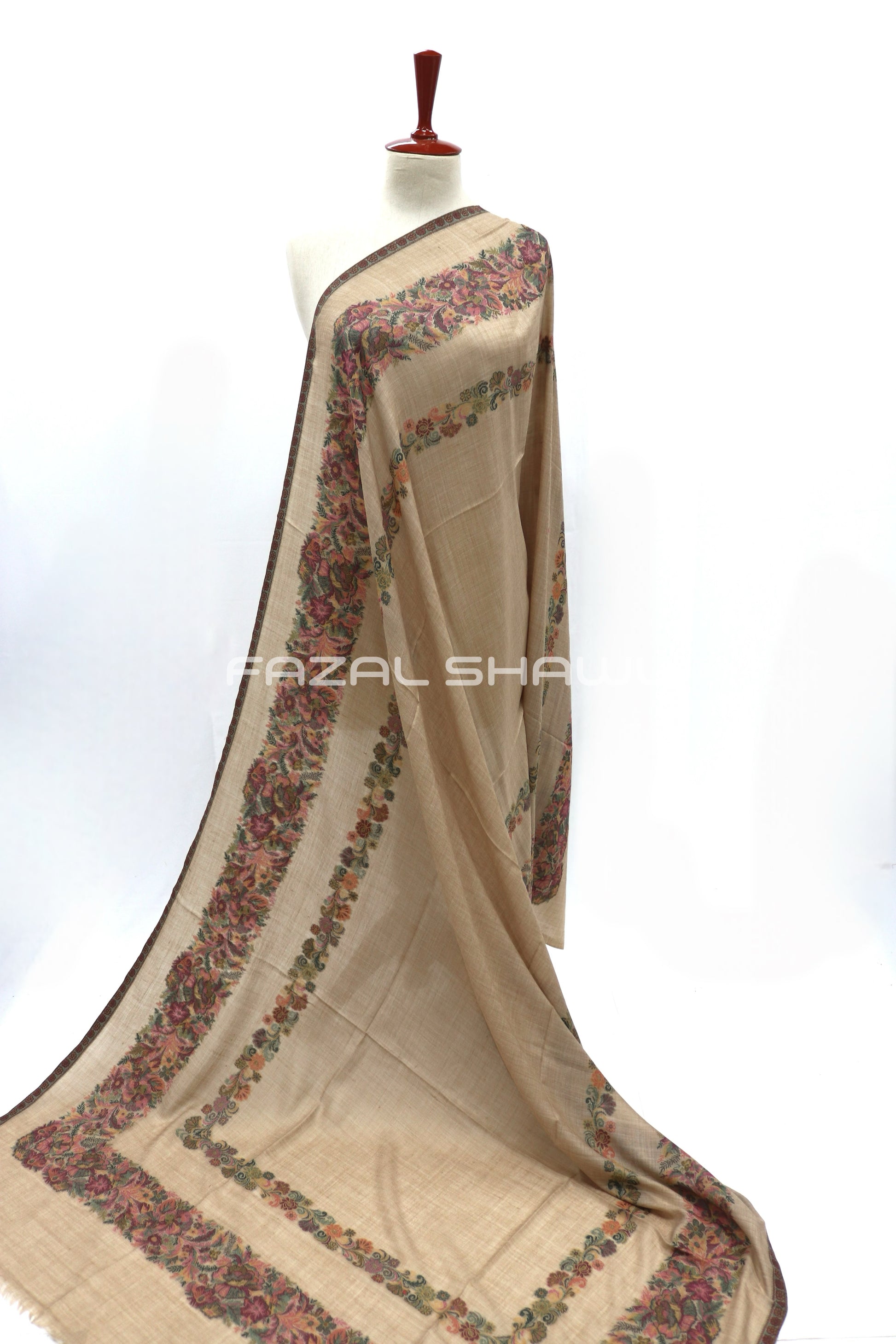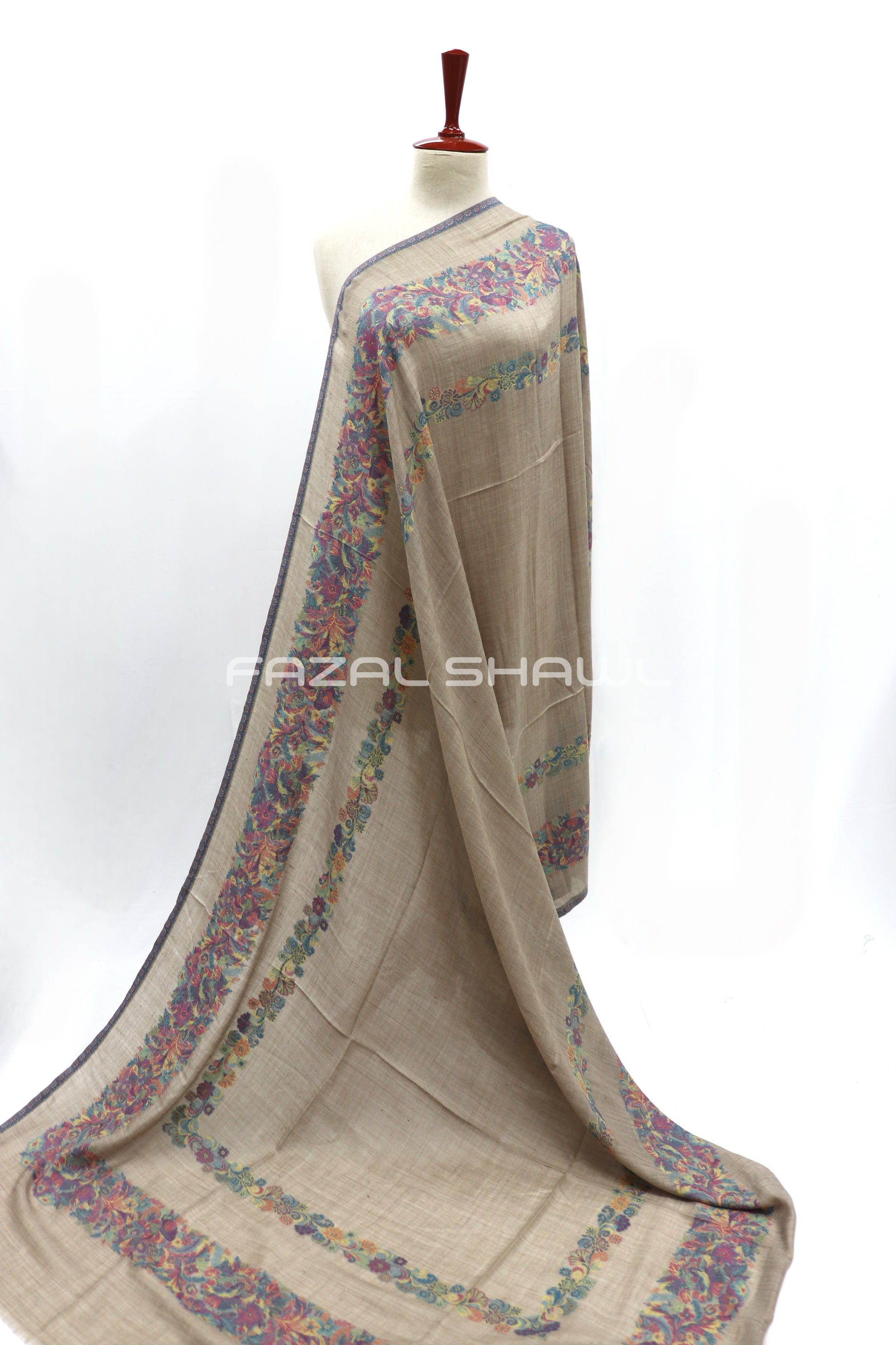 Elevate your wardrobe with the regal charm of the Double Kaani Border Shawl, a true embodiment of Kashmiri heritage and craftsmanship. Exclusively offered by Fazal Shawl, this masterpiece features Kaani borders on both sides, creating a balanced, luxurious look from every angle.