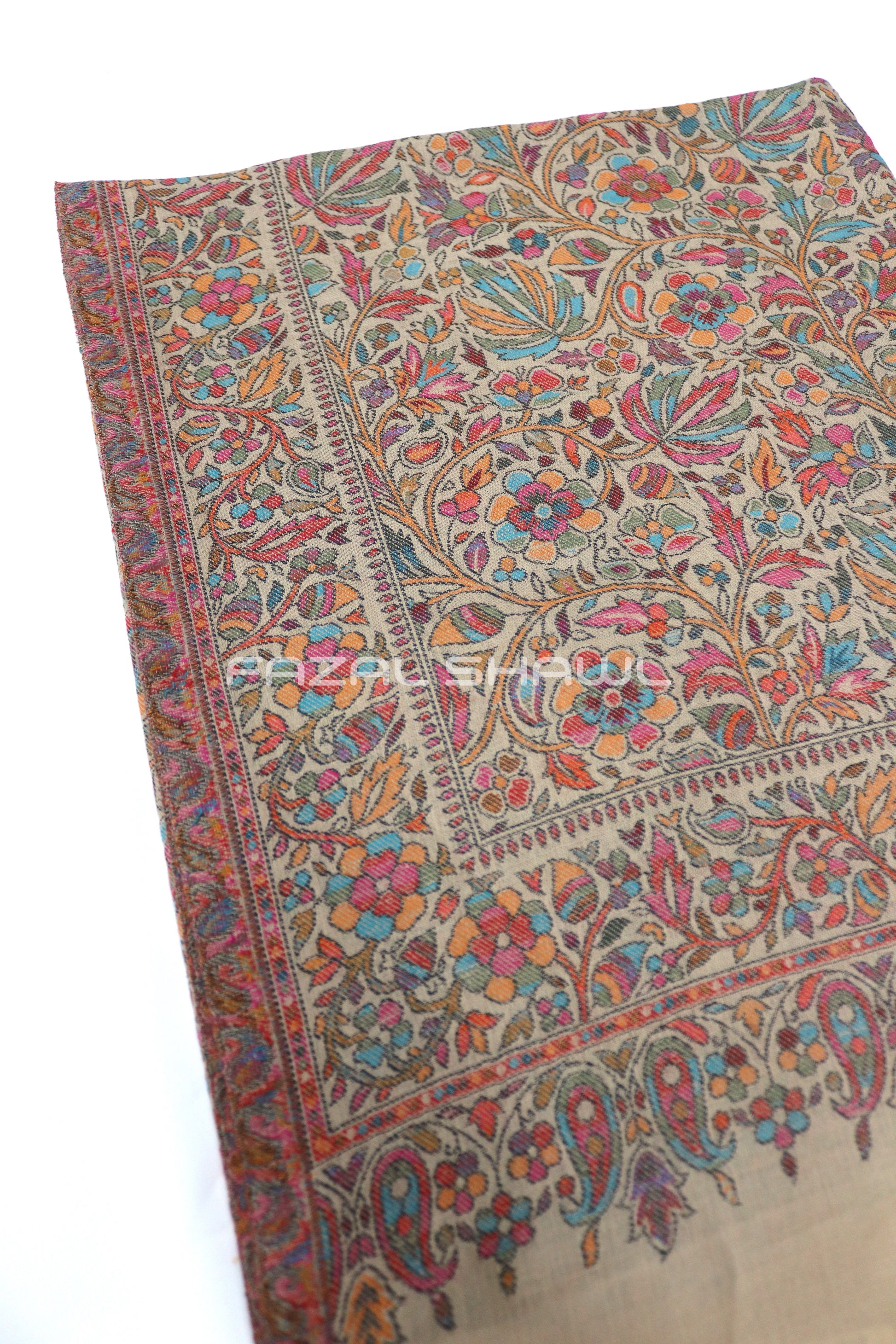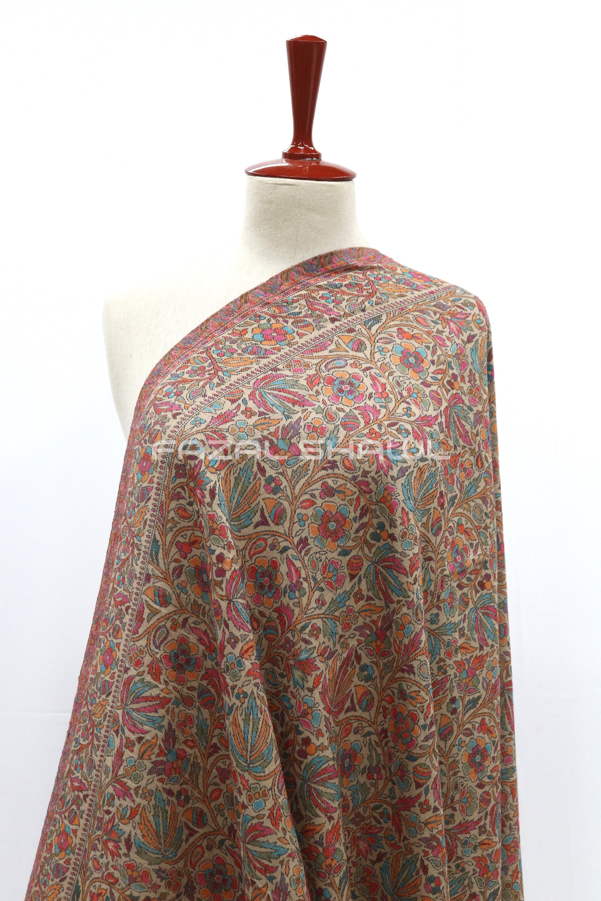 Immerse yourself in the rich tradition of Kashmiri weaving with the Kani Multi Jaal Shawl, a luxurious and eye-catching creation offered by Fazal Shawl. This masterpiece features a vibrant multi-colored ‘jaal’ pattern — a full-body floral or vine design — intricately woven using the traditional Kani technique.