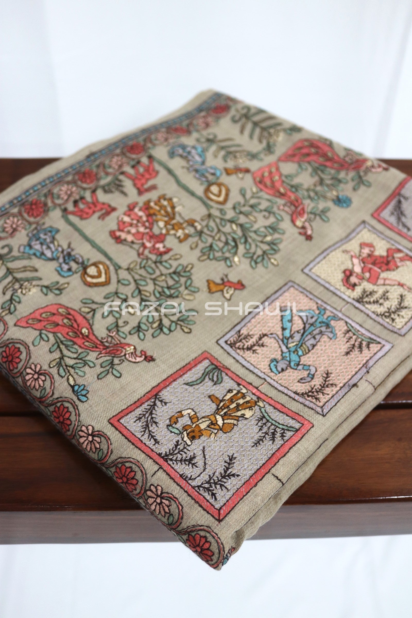 Raj kumar design and base is tosh wool. Rajkumar Jal, under the shop name Fazal Shawl, offers beautifully handcrafted shawls with traditional elegance. Each shawl reflects fine quality and cultural heritage. Made with care and premium fabrics, they are perfect for any occasion. Discover warmth and style at Fazal Shawl.
