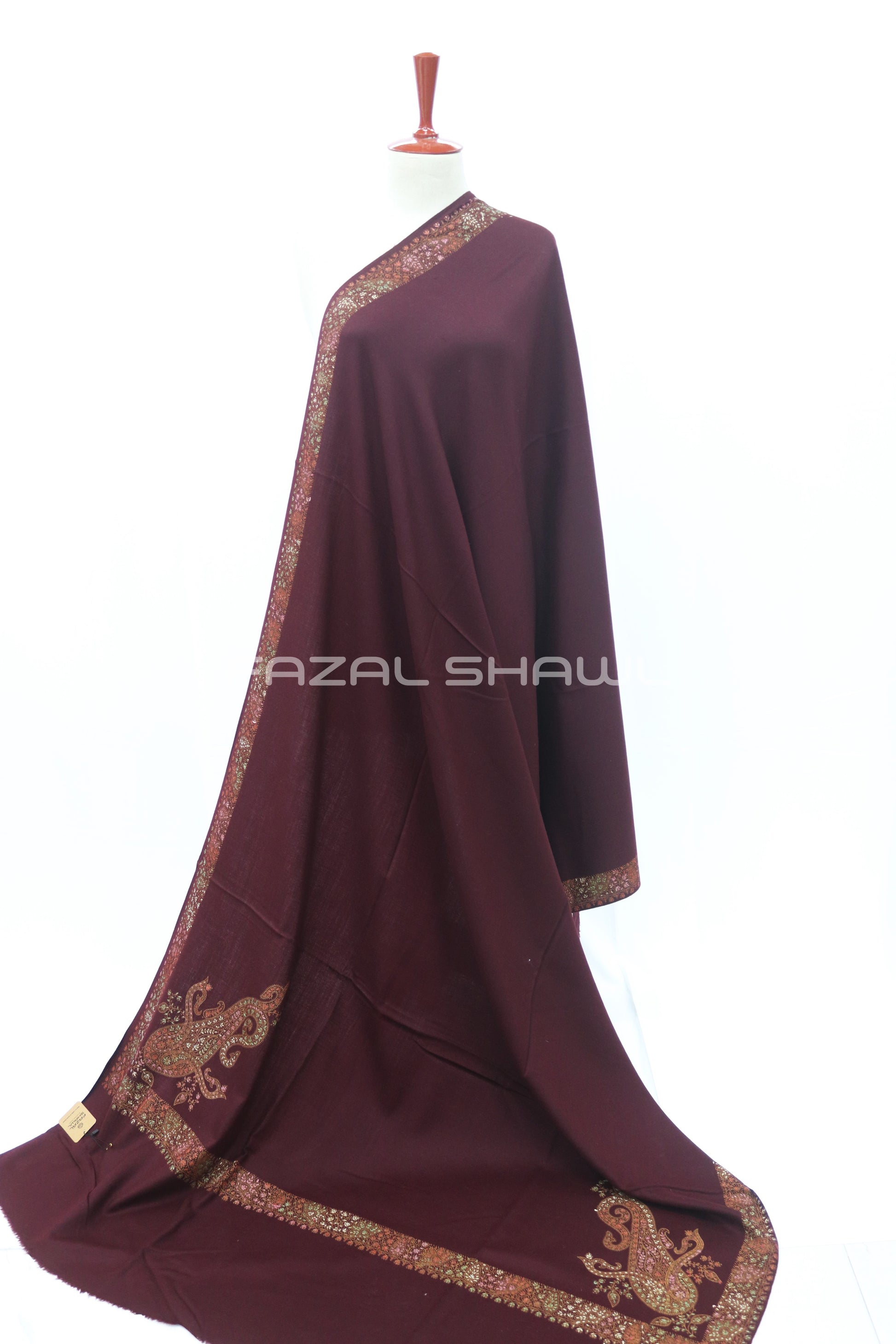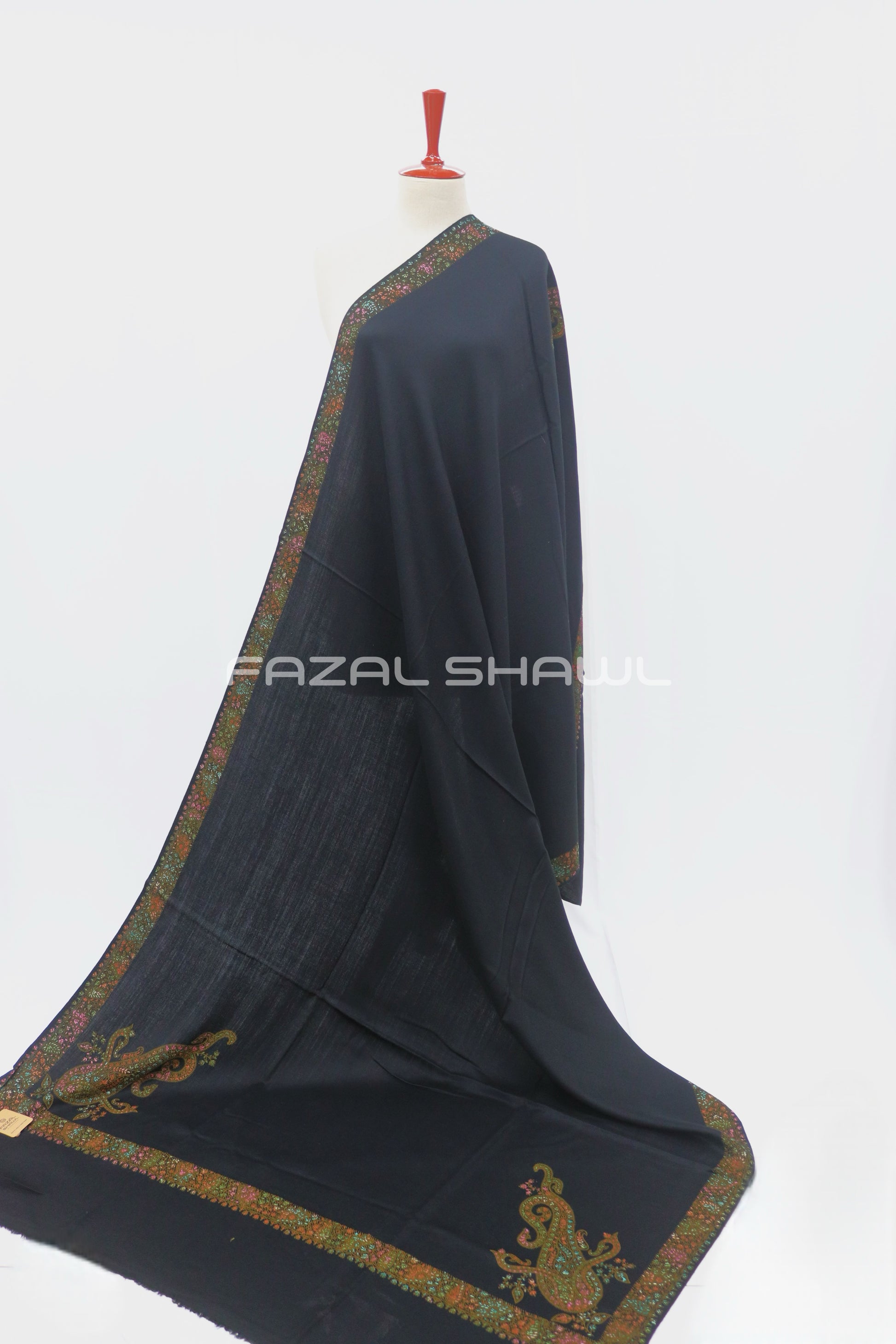 ricate embroidery or weaving along one lengthwise border of the shawl. Traditional patterns reflecting Kashmiri craftsmanship and elegance. Consistent threadwork with precise alignment and neat finishing. Color coordination to complement the base fabric of the shawl Each piece inspected for design accuracy and quality control.