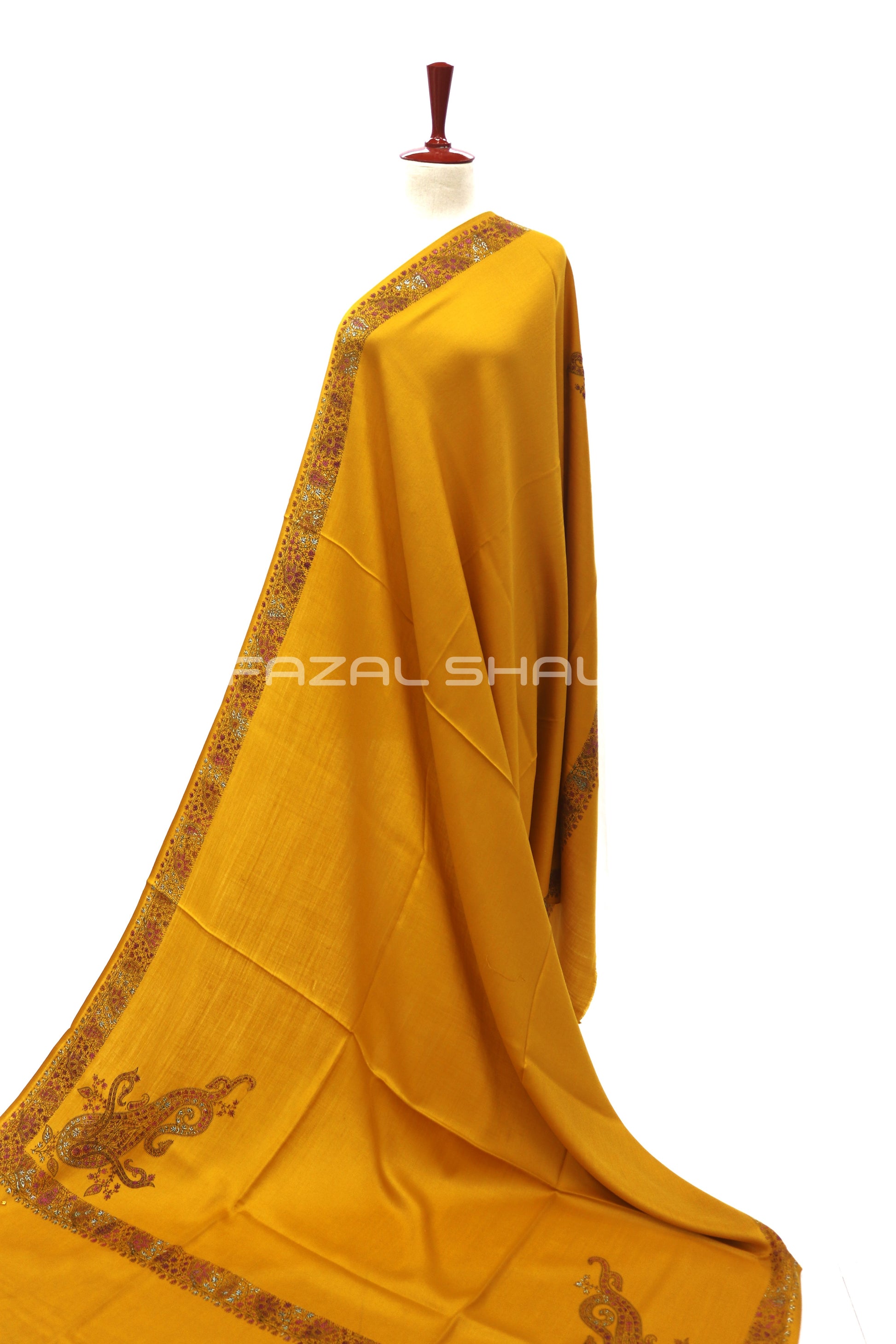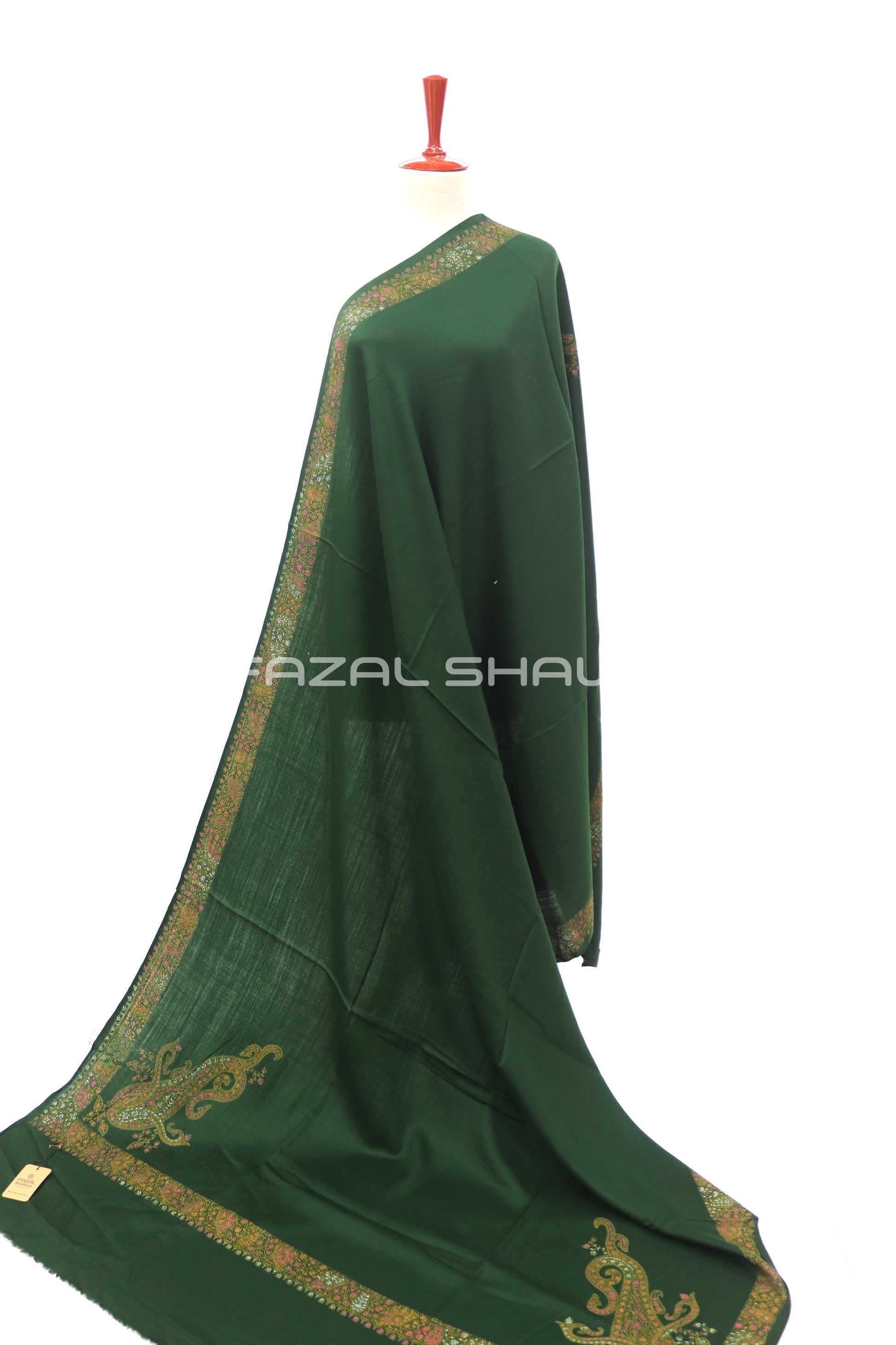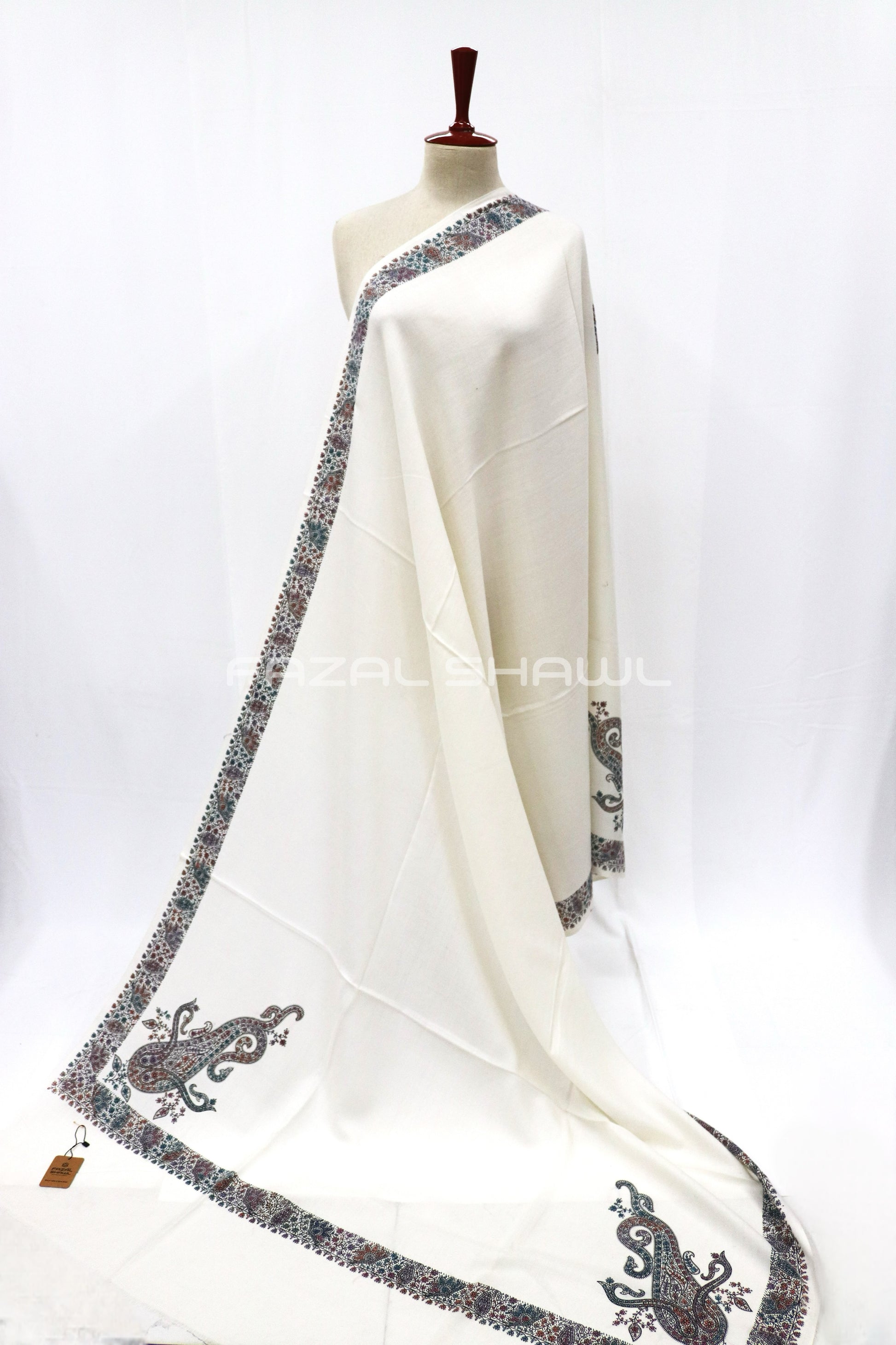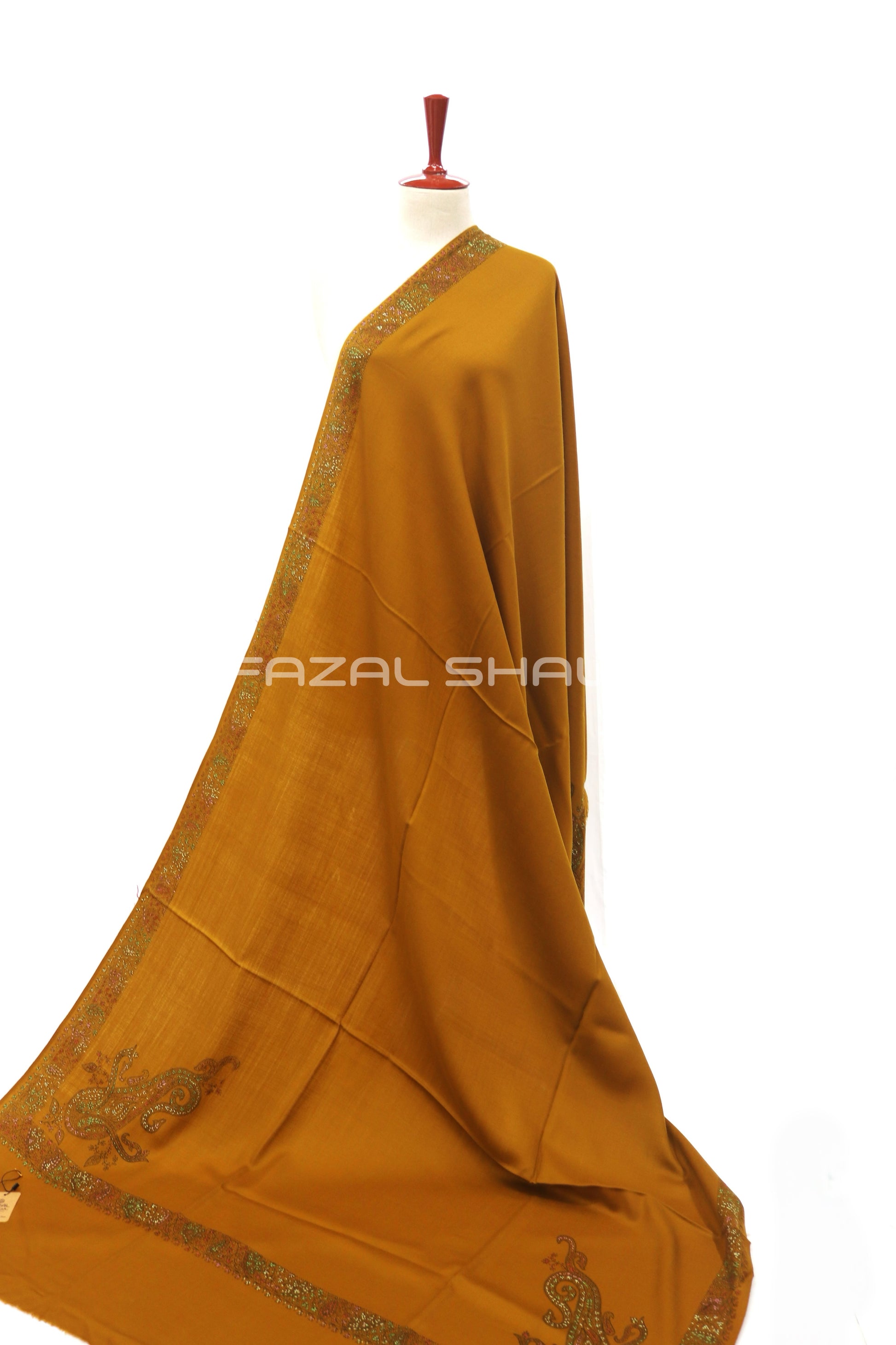 ricate embroidery or weaving along one lengthwise border of the shawl. Traditional patterns reflecting Kashmiri craftsmanship and elegance. Consistent threadwork with precise alignment and neat finishing. Color coordination to complement the base fabric of the shawl Each piece inspected for design accuracy and quality control.