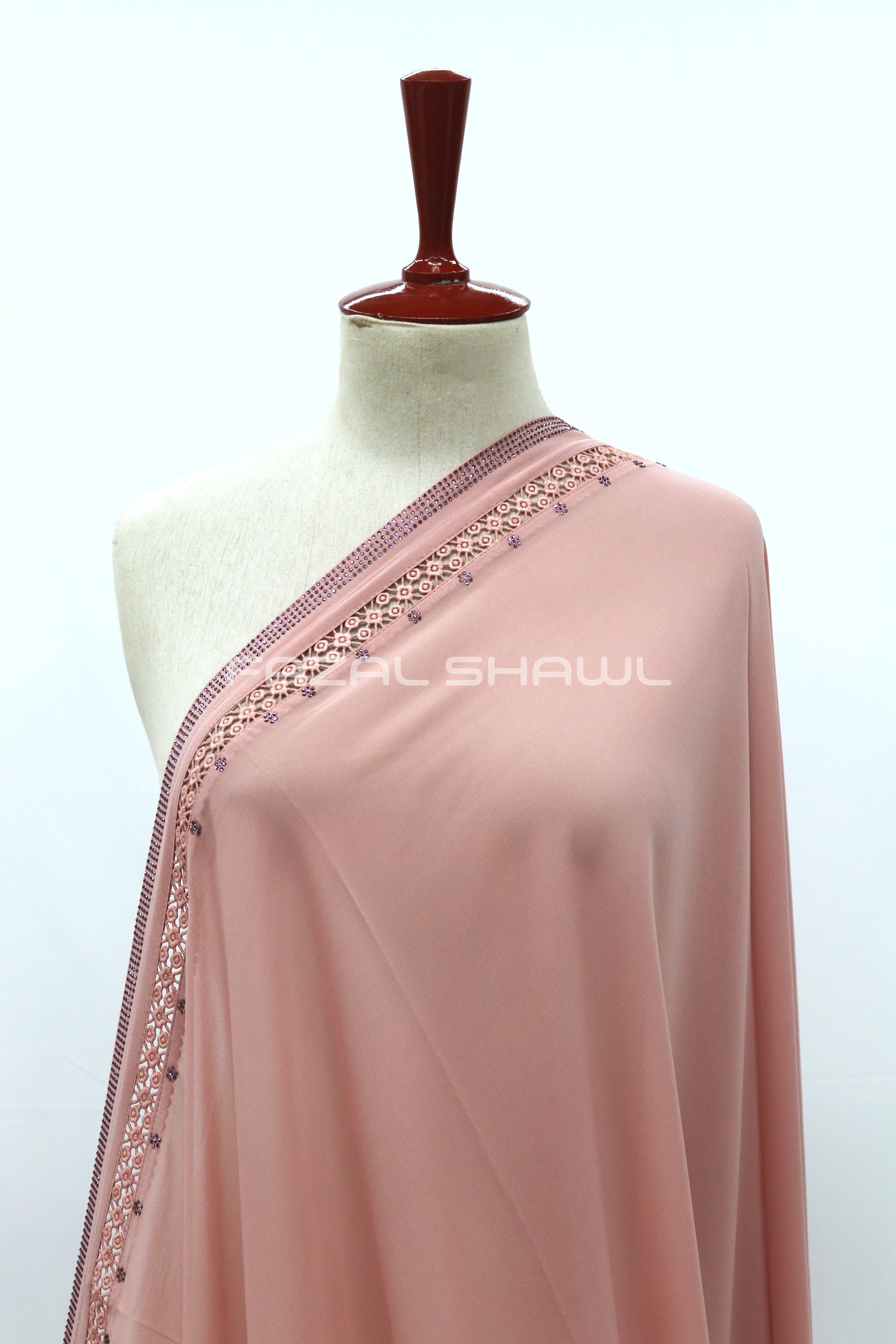 Edges: The shawl likely features a Pico or baby-hem finish on the non-decorated sides to maintain a clean profile.