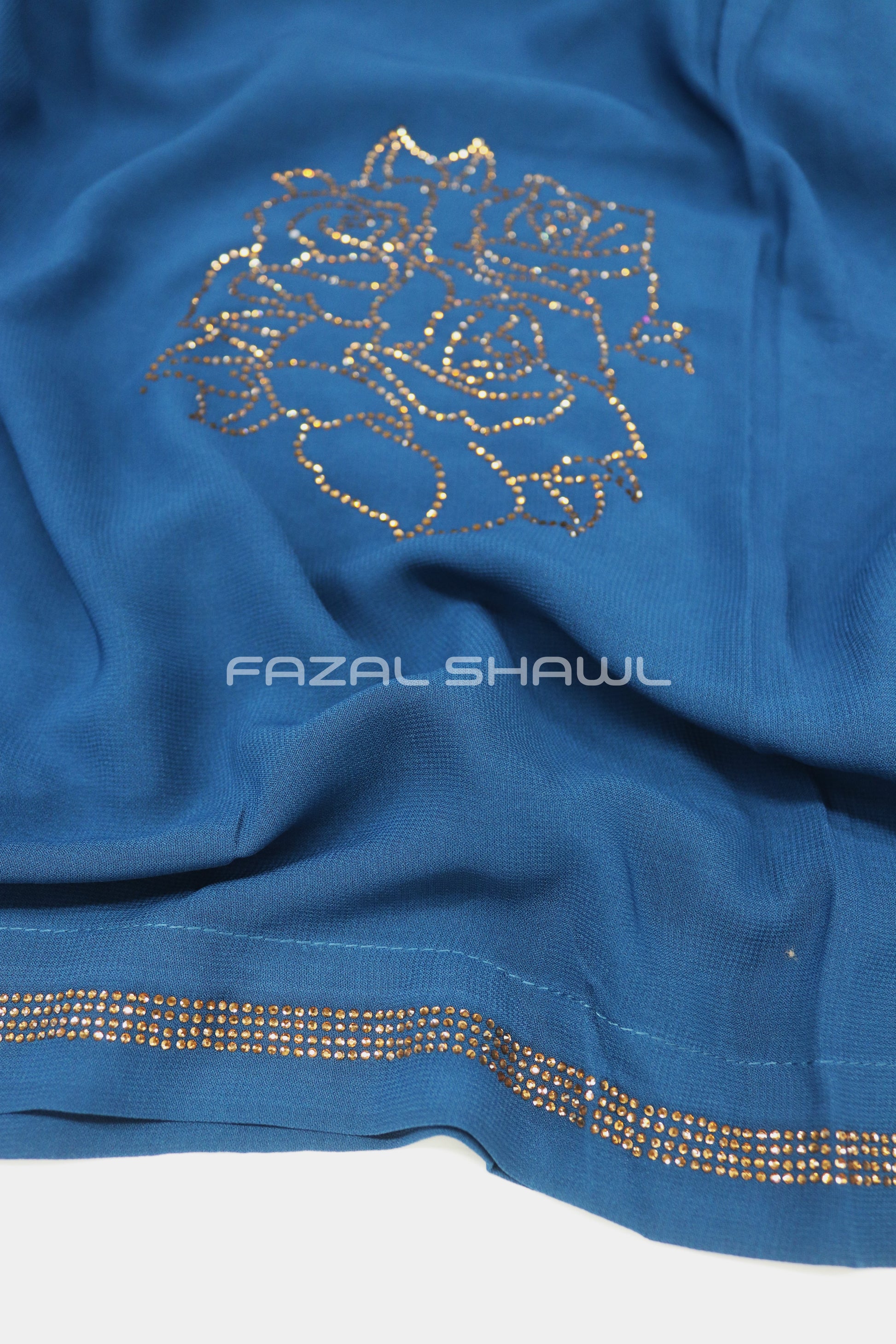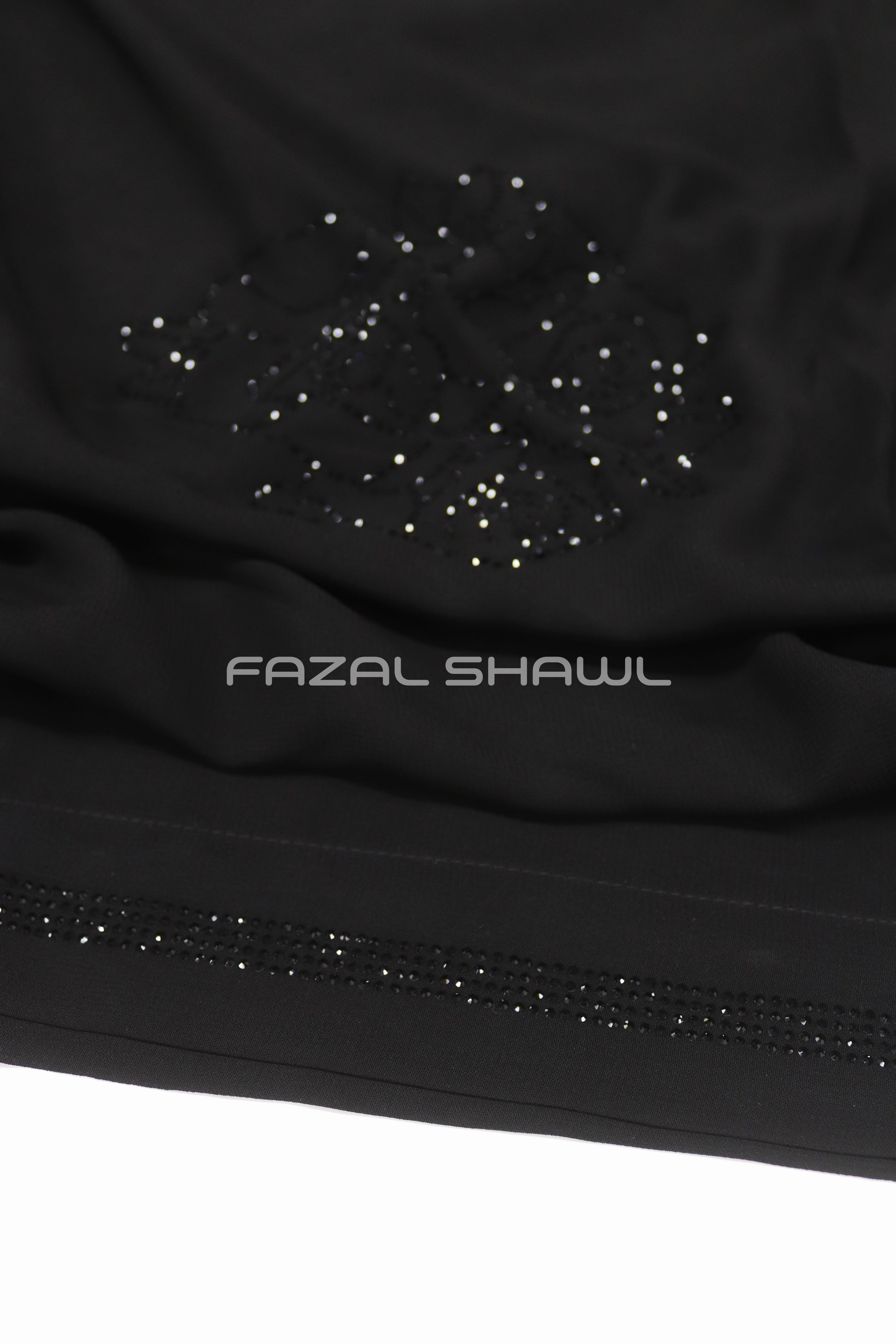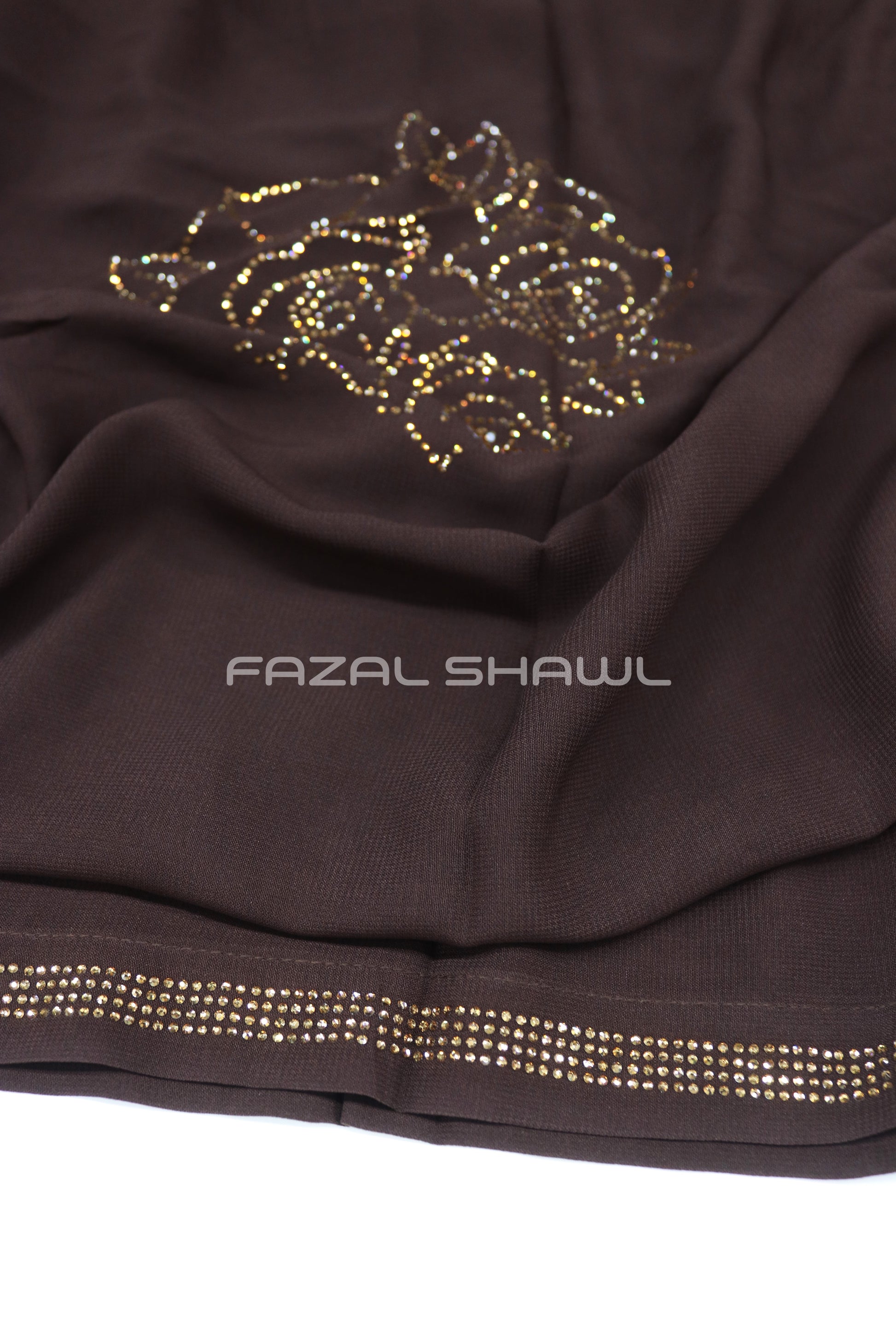 Coordinated Border: A slim, continuous line of matching stone/sequin work runs along the entire edge (border) of the shawl, providing a clean and polished frame to the overall design.
