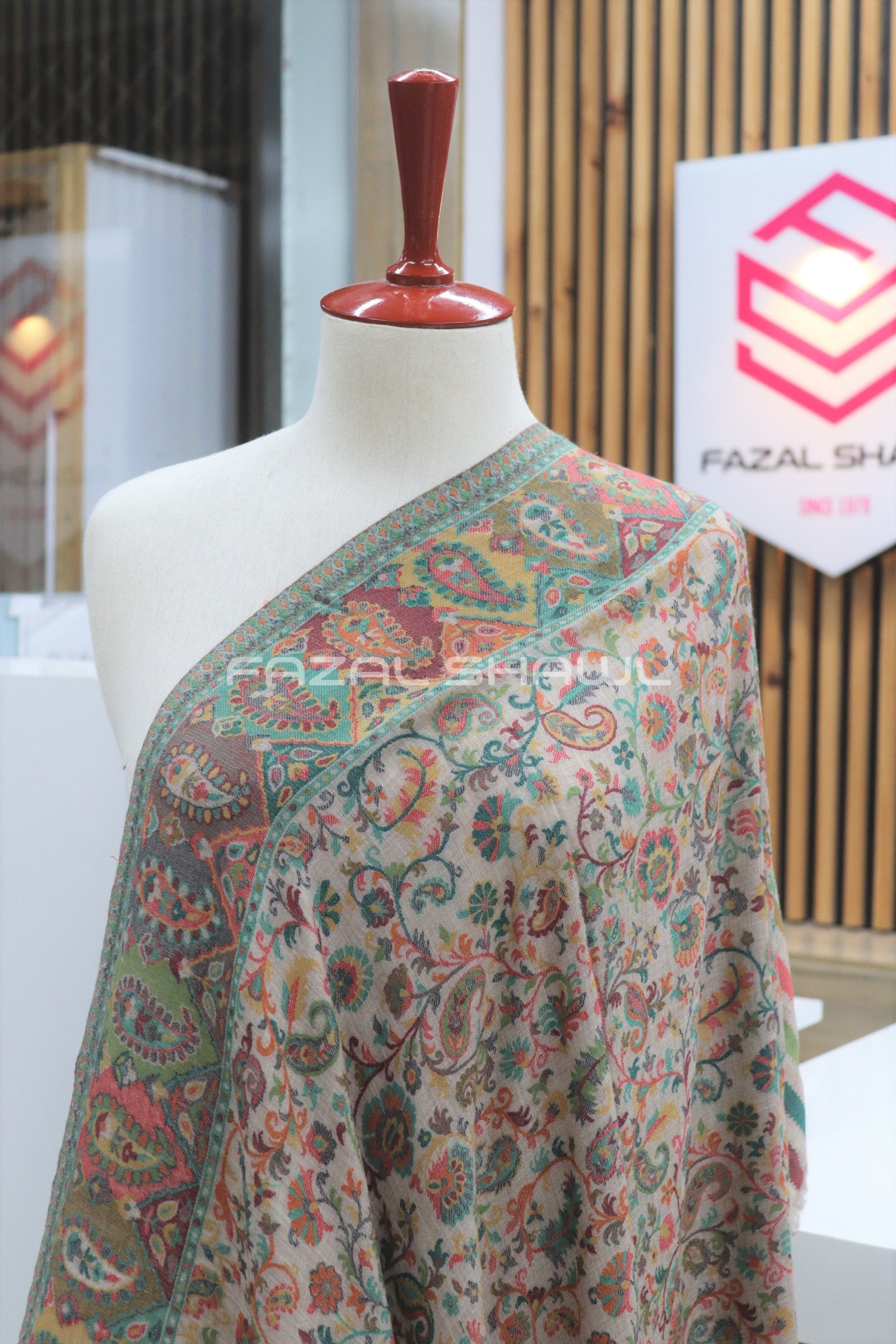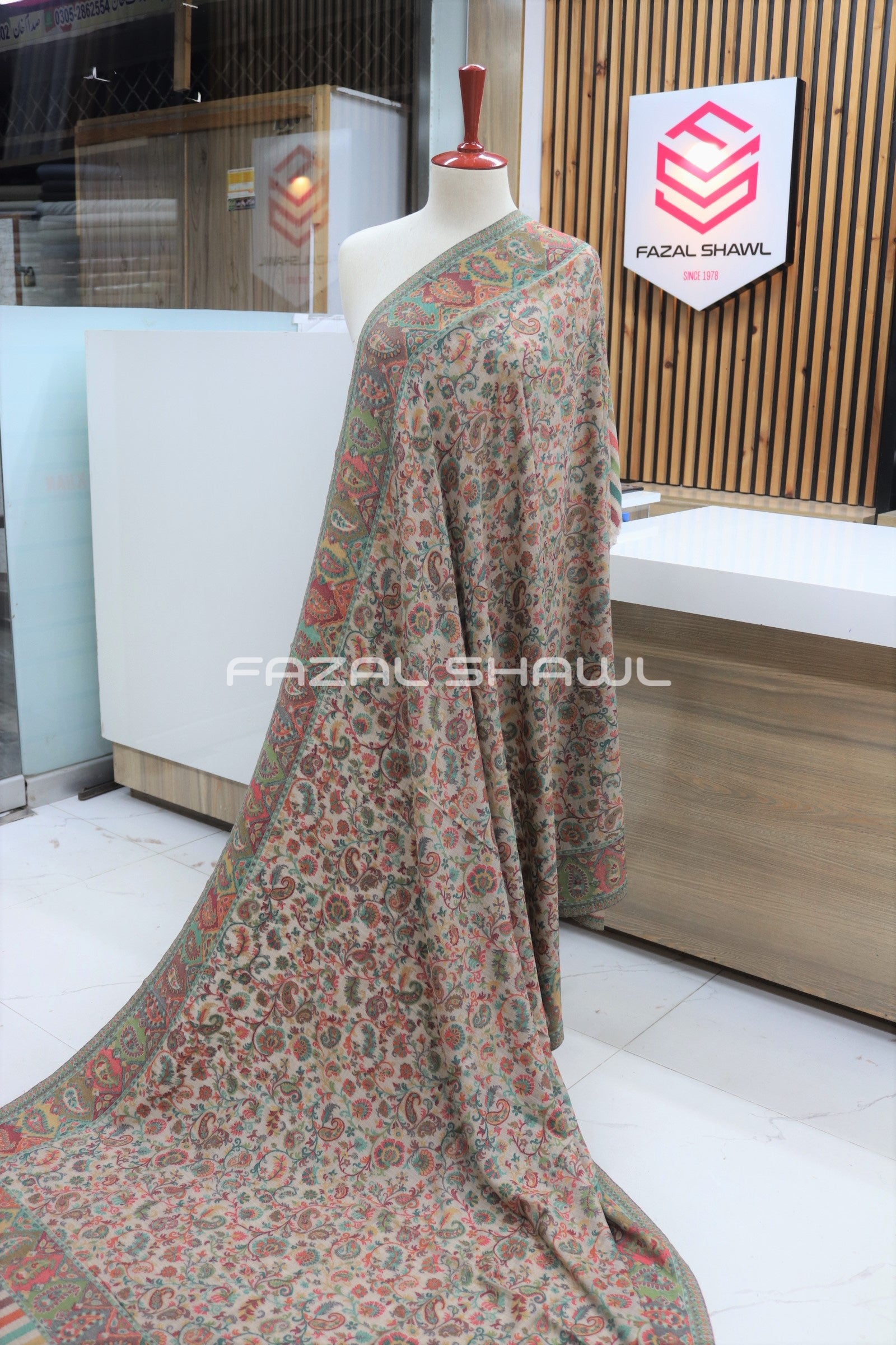 Kaani Multi Jaal Kaani Design With Multicolor And Base is Pashmisa Woolen. Kaani Multi Jaal Kaani Multi Jaal Shawl – A Masterpiece by Fazal Shawl Sop Experience the richness of tradition with this stunning Kaani Multi Jaal Shawl from Fazal Shawl Sop. Woven with intricate multi-colored jaal (all-over) patterns in classic Kaani style, this shawl showcases the artistry that Kashmir is renowned for.