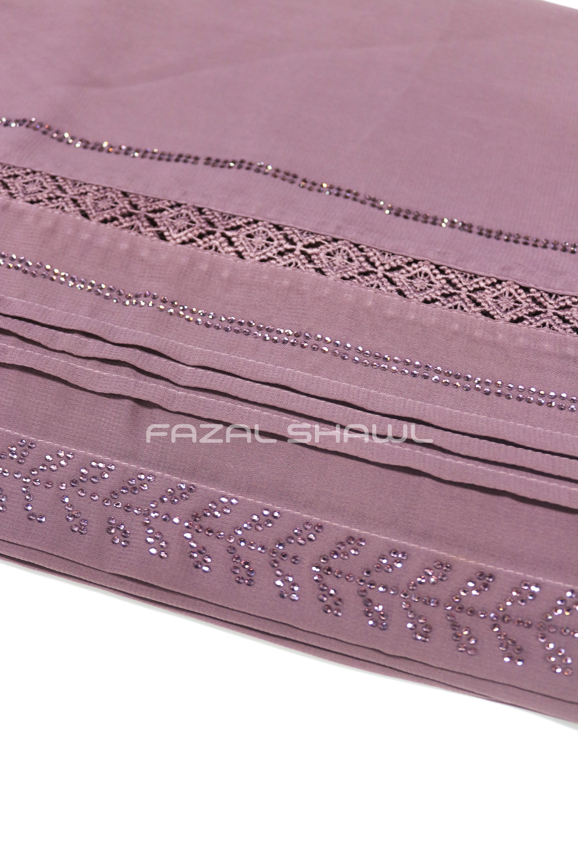 Lace Inset: A delicate Crochet-style lace (Kingri or Net lace) is inserted between rows of crystal lines, featuring a geometric diamond-and-circle pattern.