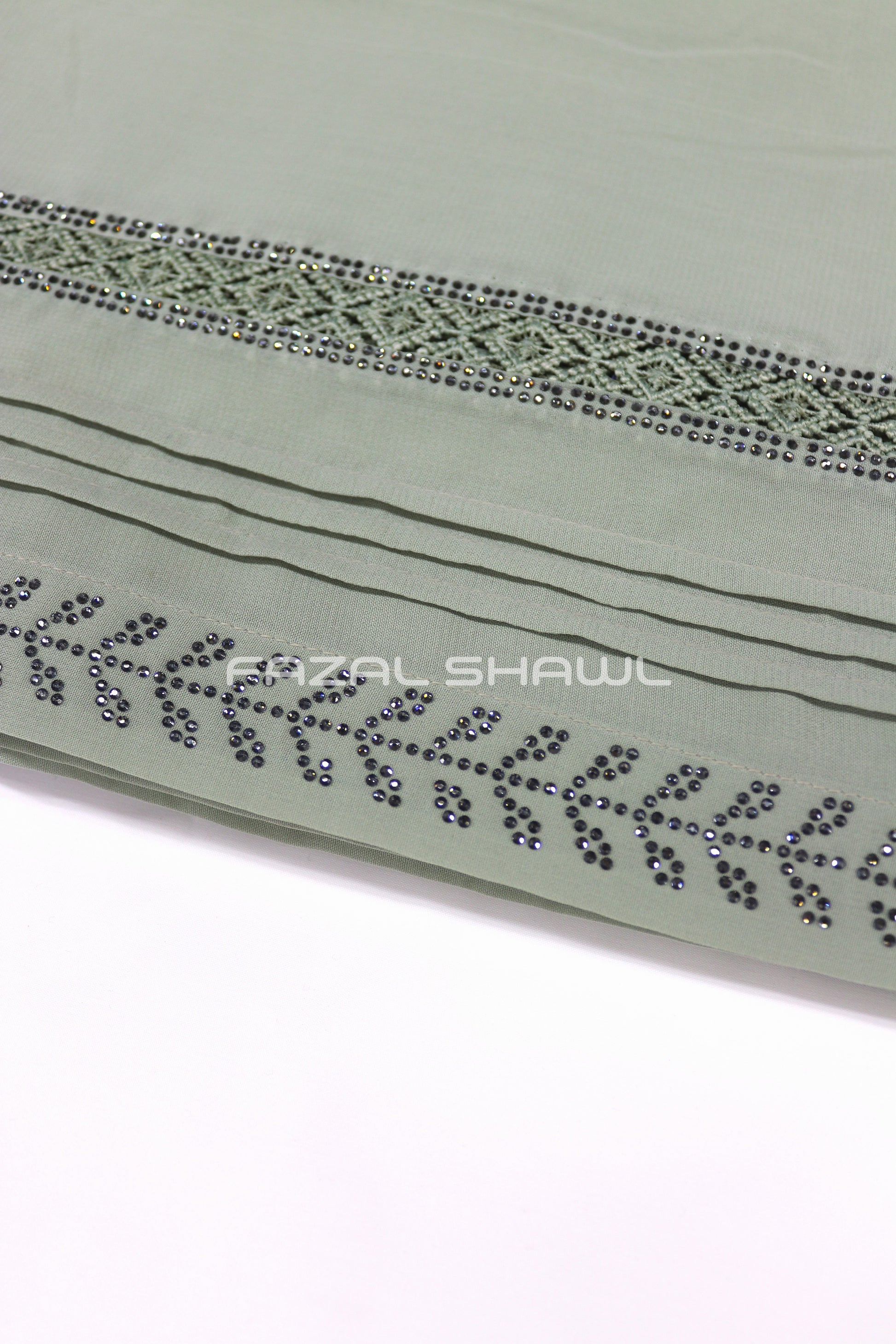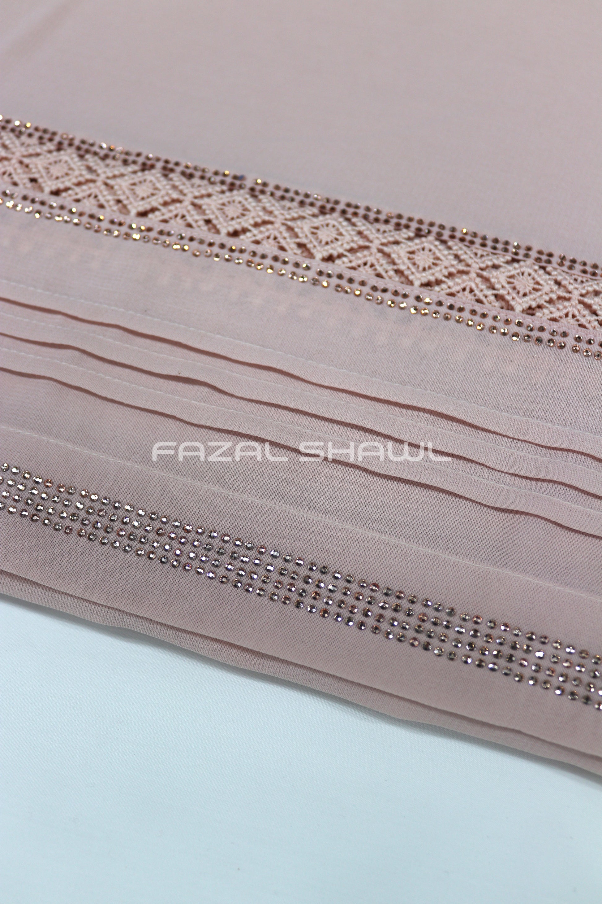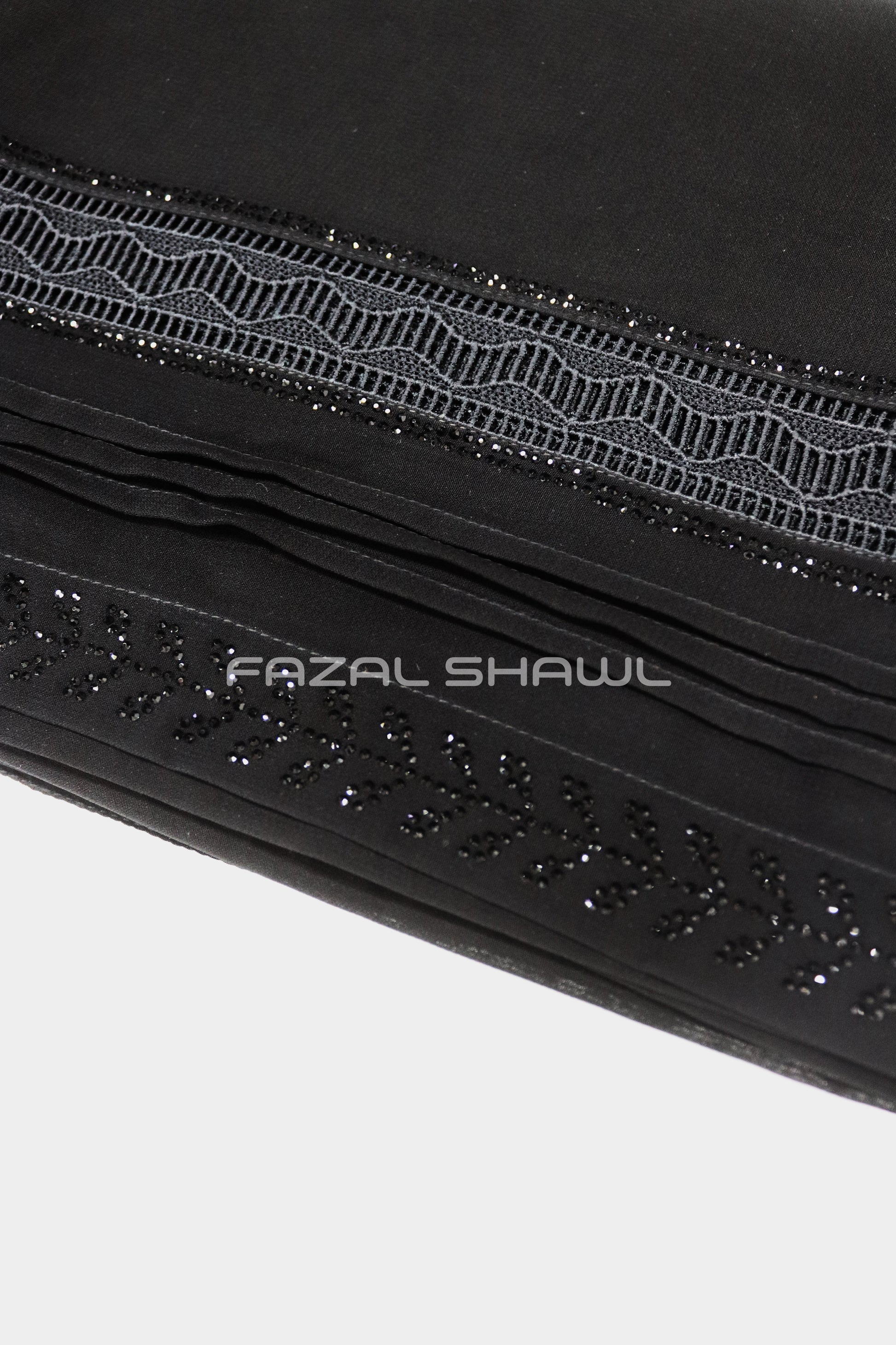 Crystal Borders: Parallel lines of small diamantes frame the lace and pleated sections, adding a "shimmer" effect when the shawl moves.