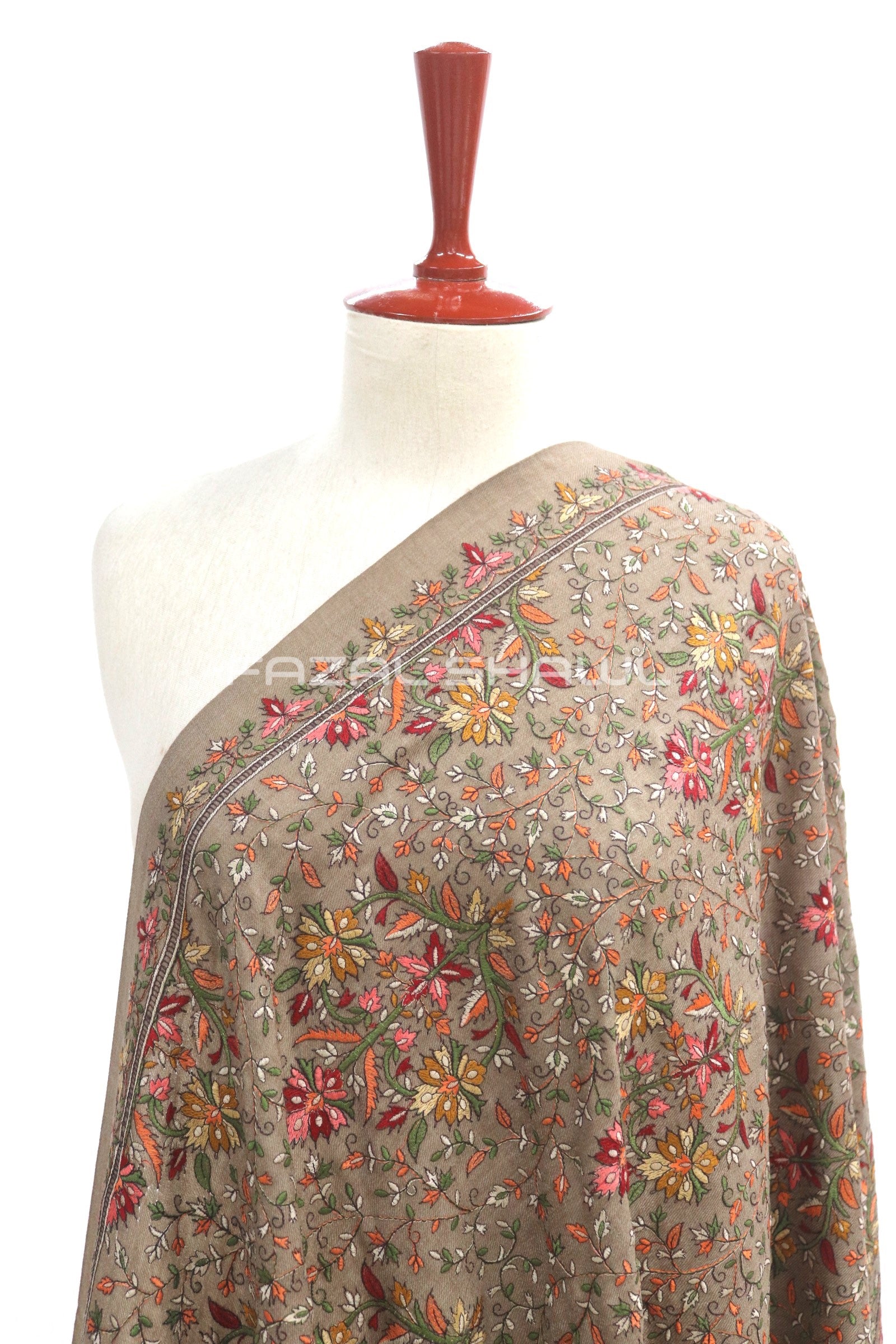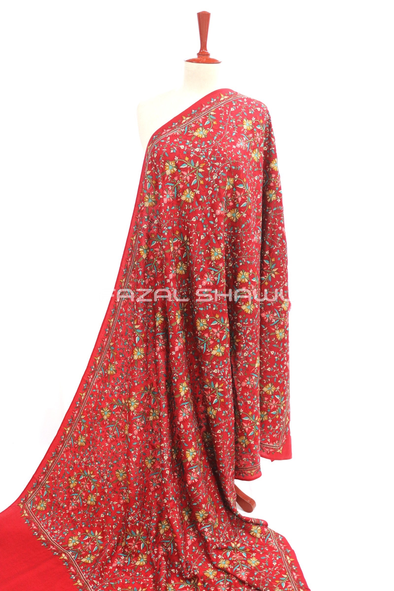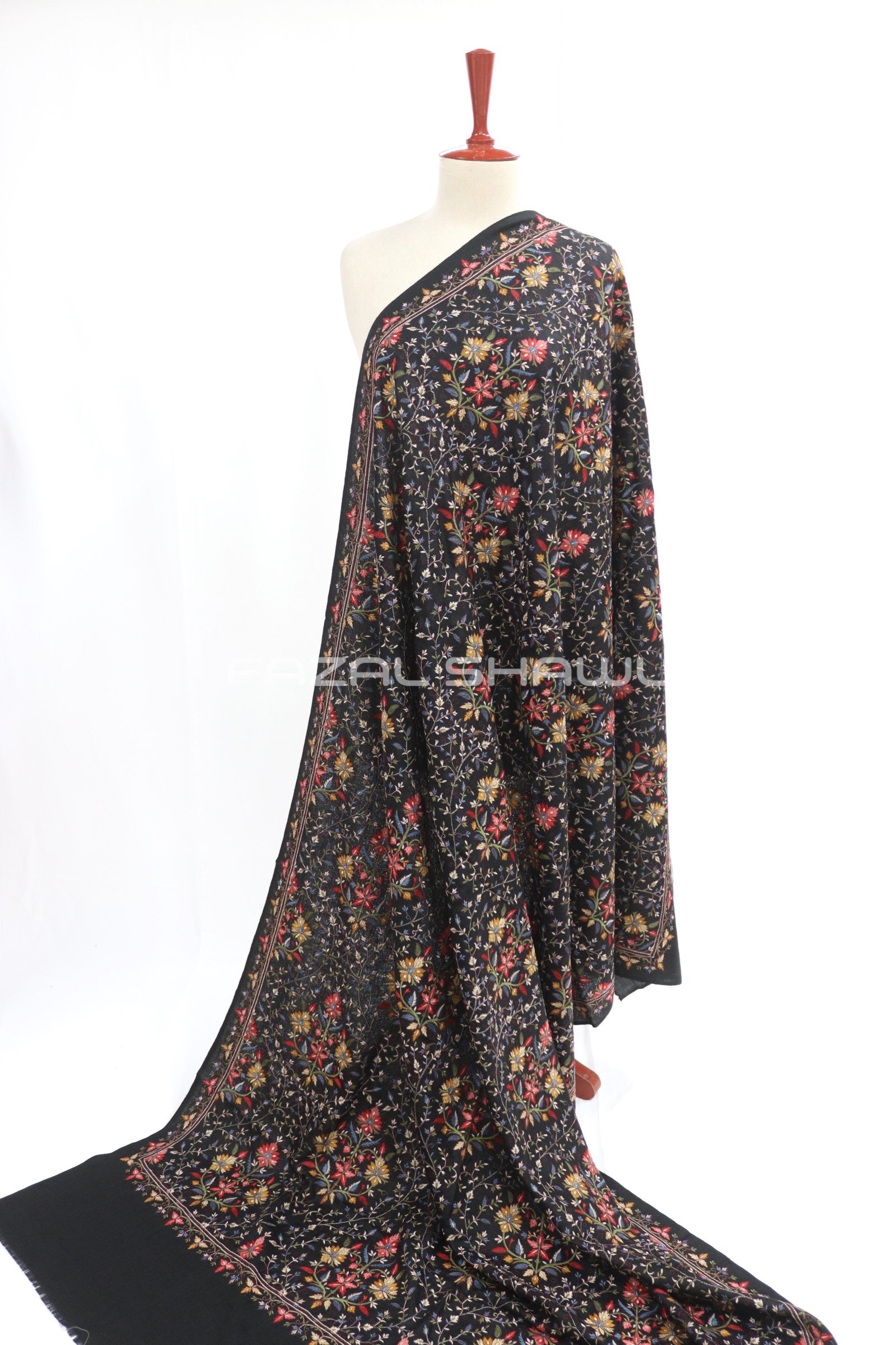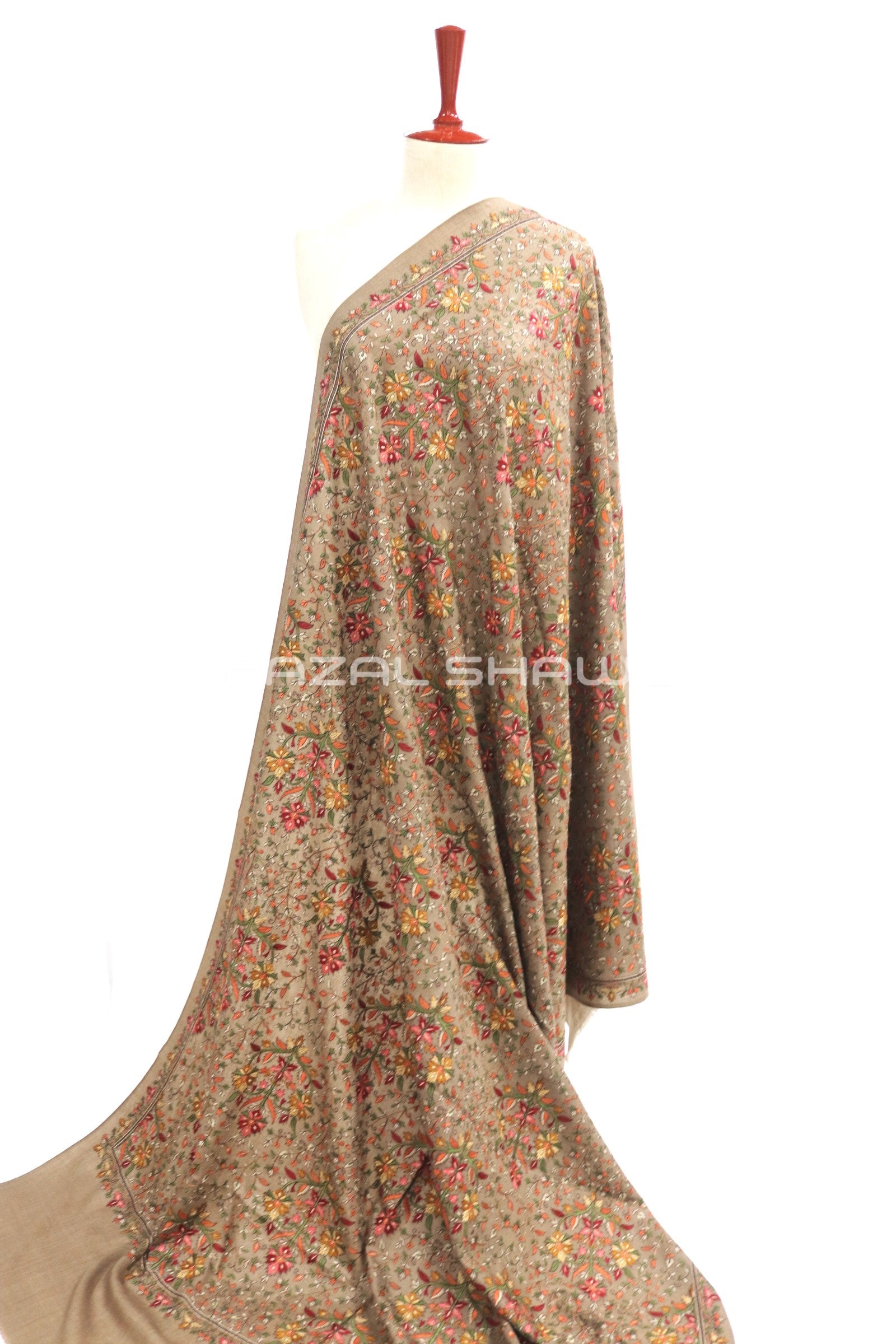 Multi Pata Jal Base on Pashmina Shawl. Fazal Shawl introduces the stunning Multi Pata Jaal Shawl collection. Adorned with colorful leaf-style patterns for a rich, elegant look. Each piece is a blend of tradition, detail, and fine craftsmanship. Perfect for festive wear or adding charm to your everyday style.