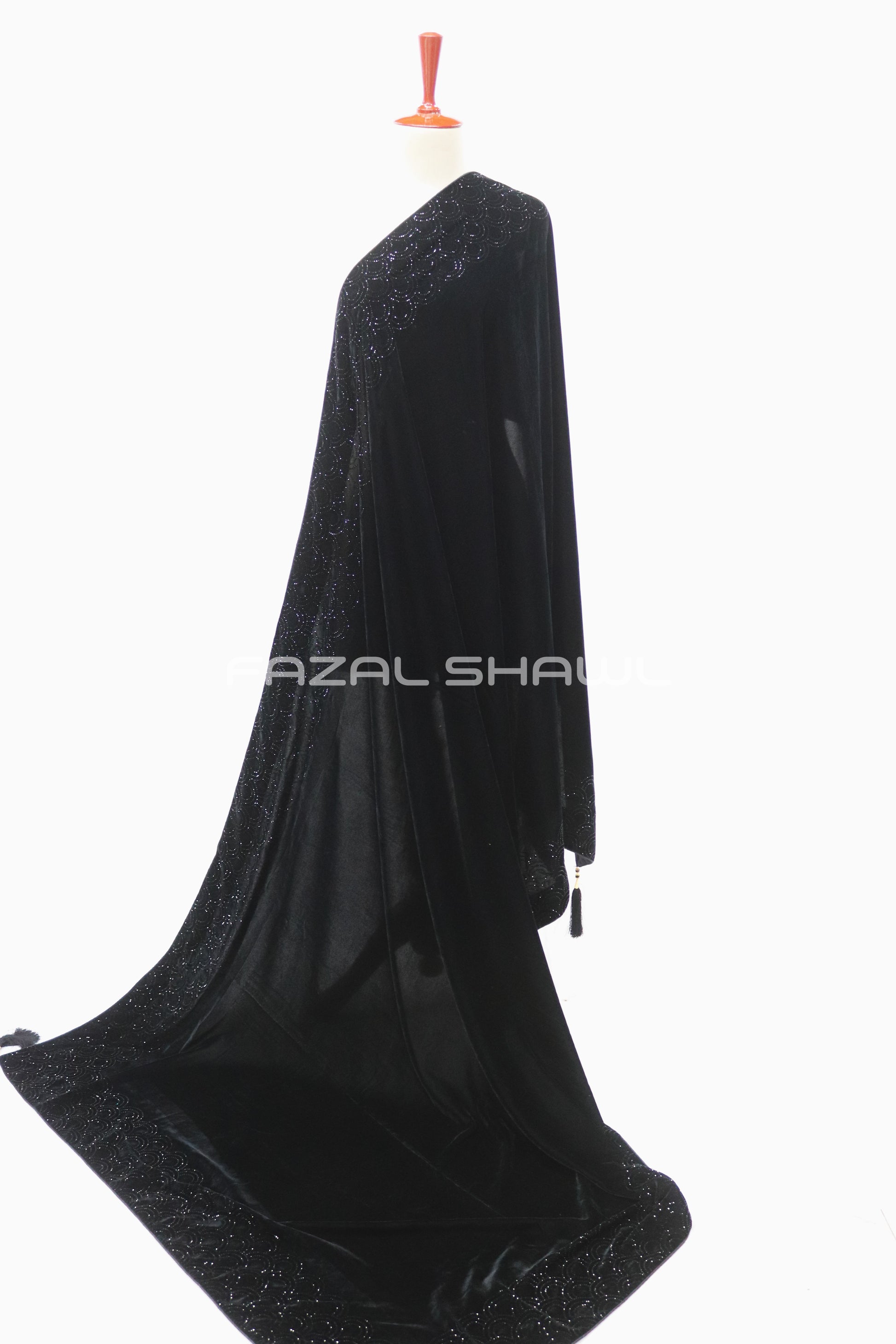 The “Stone Velvet” shawl by Fazal Shawl features a luxurious premium velvet body, selected for its rich texture, deep colour saturation, and soft drape. Along the border (and optionally across accents of the body) are hand-embellished stone-work details — flat crystals or fine stones that catch the light and add regal glamour to the piece. The velvet base ensures that the stone embellishments stand out beautifully, creating an opulent finish. With neatly finished edges and reinforced backing behind the stone-work, the shawl is designed for both stunning appearance and lasting wear.