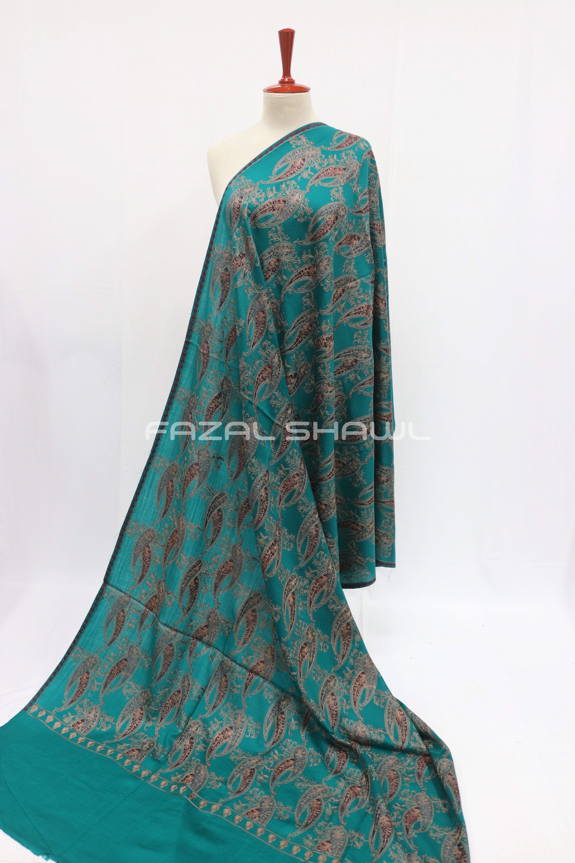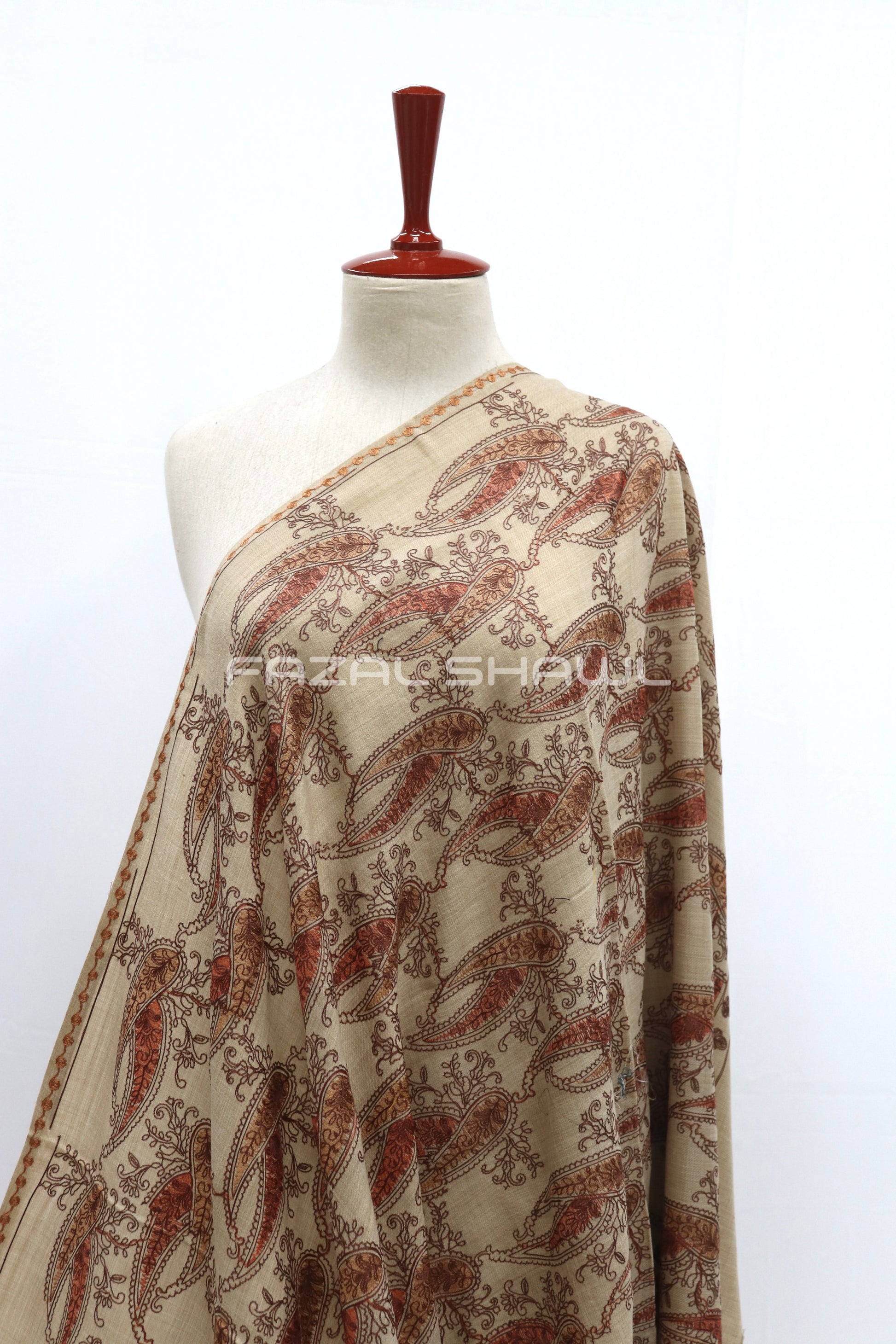 Designed with an all-over leaf-inspired jaal pattern in a self-tone embroidery or weave, this shawl offers a subtle, textured look that speaks volumes without saying a word. The delicate leaf motifs create a flowing, organic design that enhances the shawl’s elegance, making it ideal for both formal and semi-formal occasions.