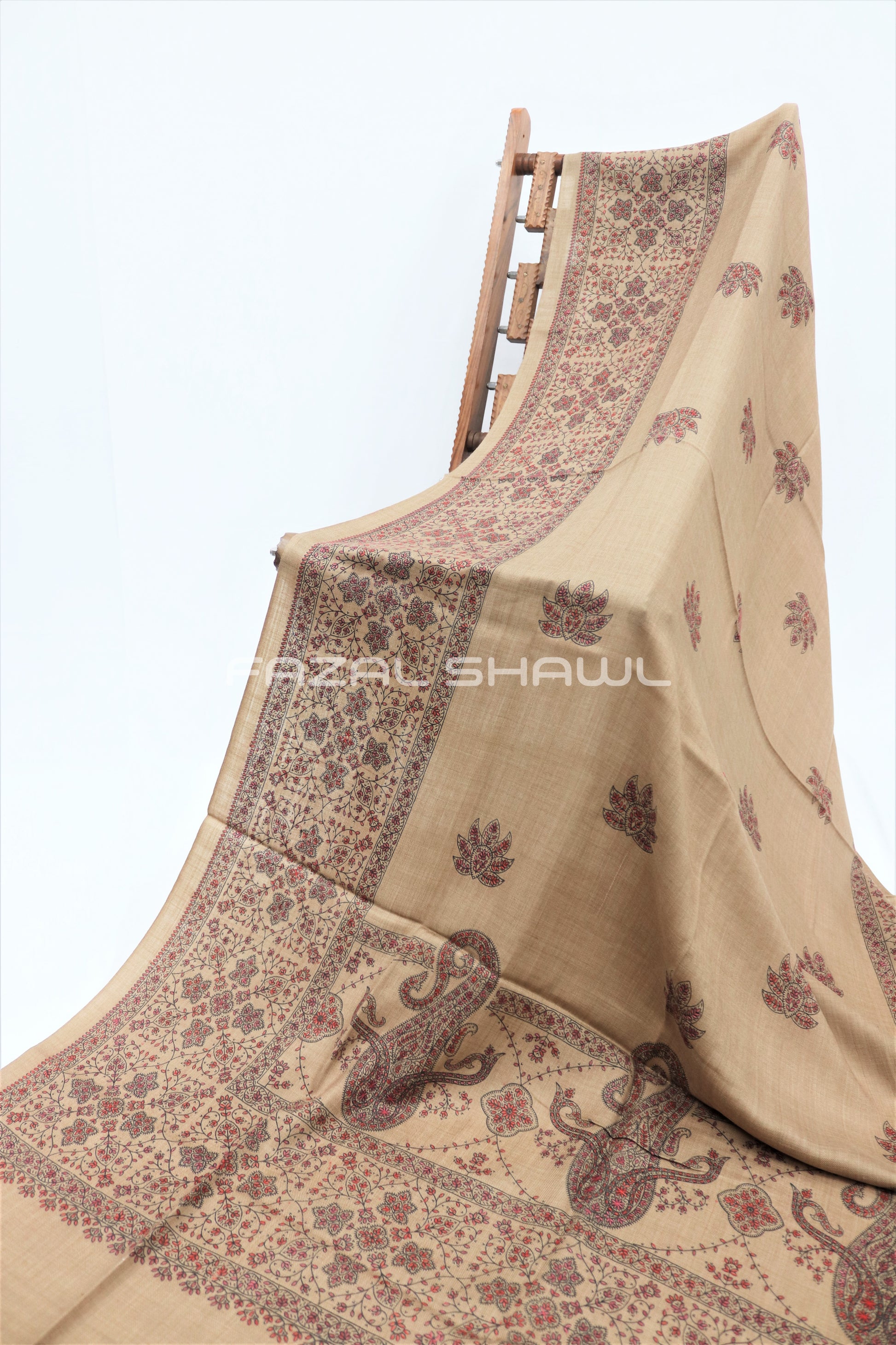 Elevate your wardrobe with the refined beauty of our Sui Work Pala Shawl, exclusively from Fazal Shawl. This exquisite piece features detailed sui work (hand needle embroidery) along the pala (borders), showcasing the skill and precision of traditional artisans.
