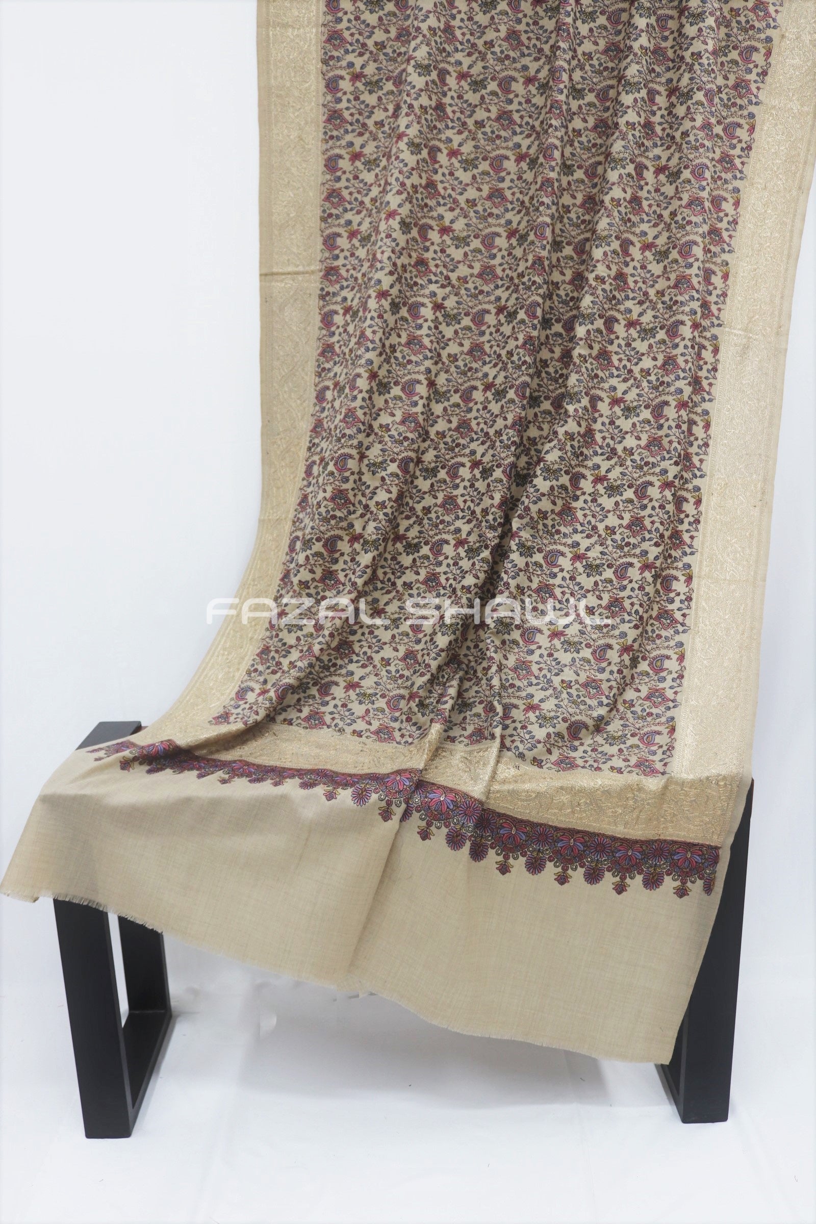 Experience luxury at Fazal Shawal, With Zari Multi Border Jall that stands tall. Rich zari work with a modern blend, Elegance and style that never end.